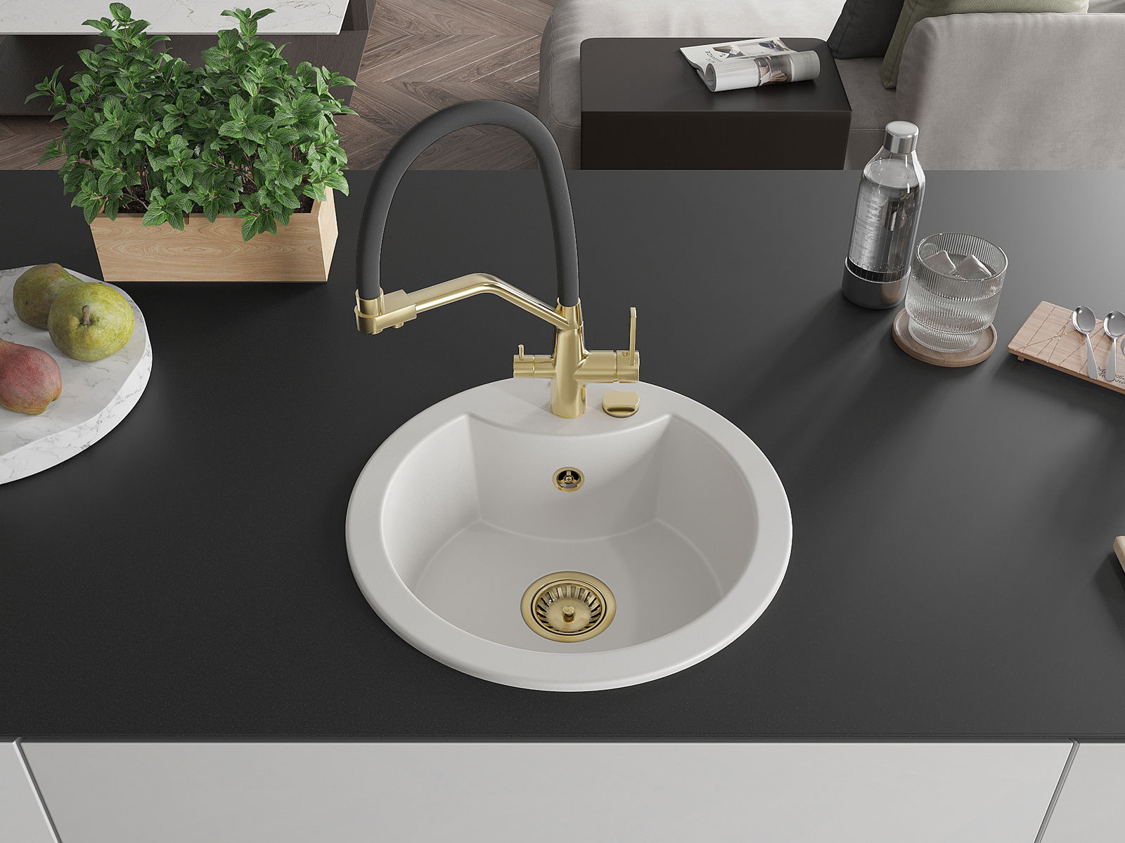 Kriauklės paviršius yra atsparūs dėmėms ir spalvos pasikeitimui, dėl kurio lengva valyti ir ilgą laiką išlaikyti savo spalvą. Estetinis ir praktiškai papildantis kiekvieną virtuvę.