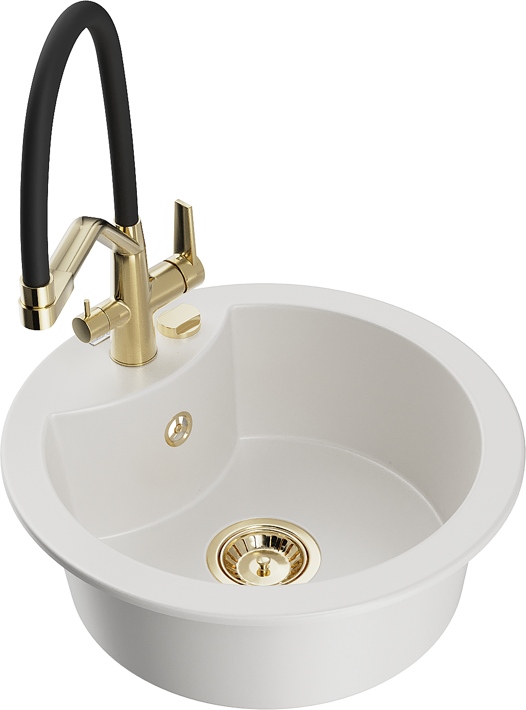 Mexen Diego granitinė vienos plautuvės kriauklė su Duo virtuviniu maišytuvu, balta - 6512-20-671701-57-G