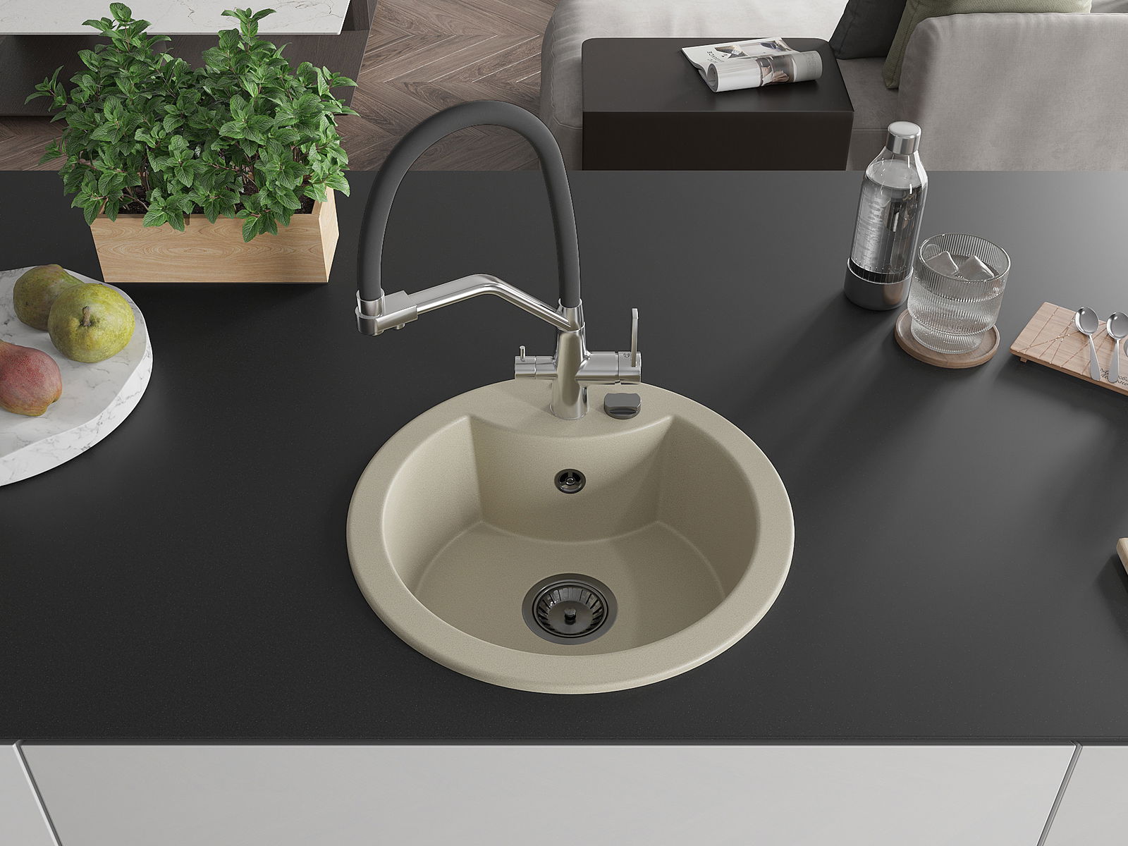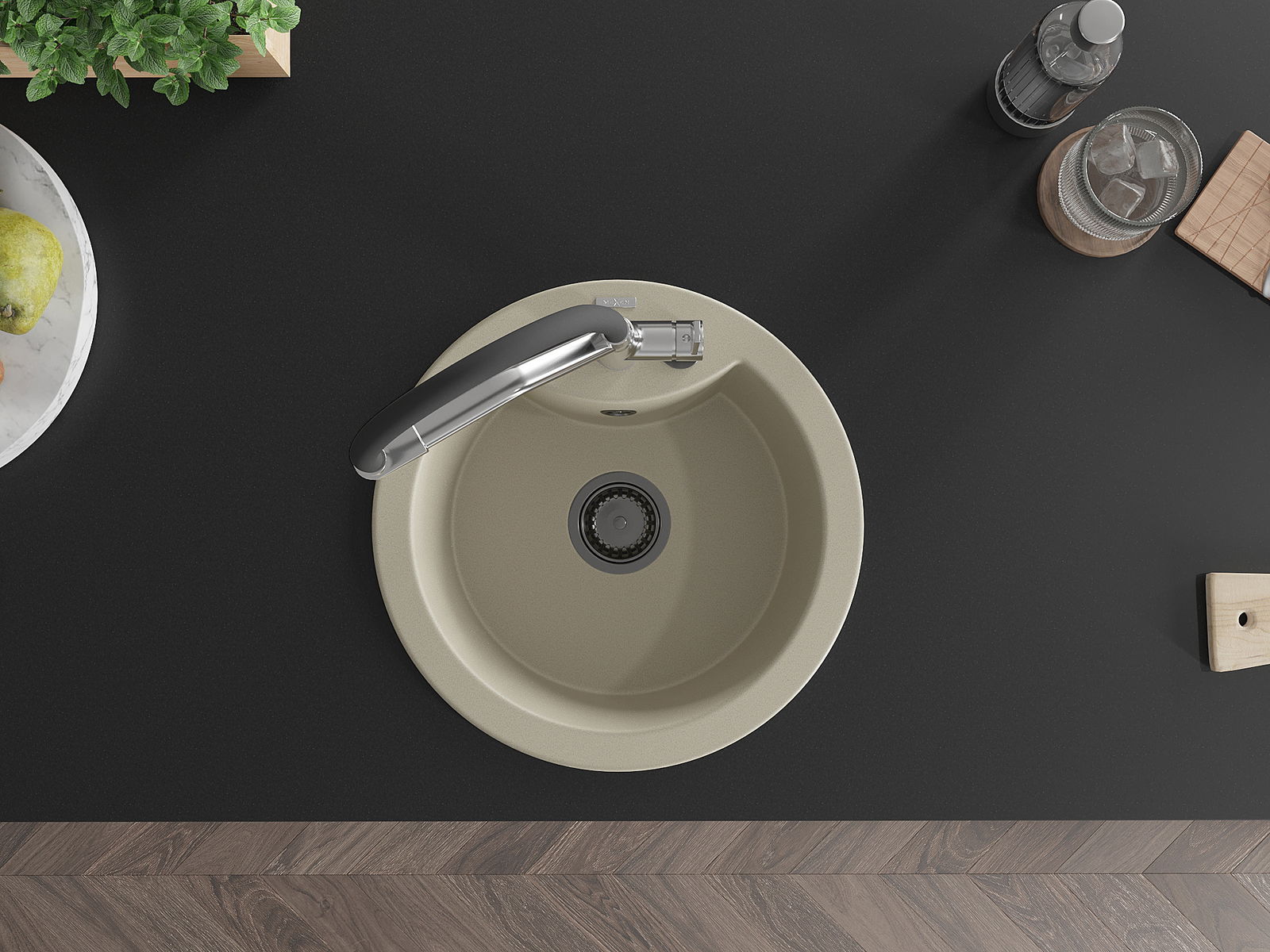 Kriauklės paviršius yra atsparūs dėmėms ir spalvos pasikeitimui, dėl kurio lengva valyti ir ilgą laiką išlaikyti savo spalvą. Estetinis ir praktiškai papildantis kiekvieną virtuvę.