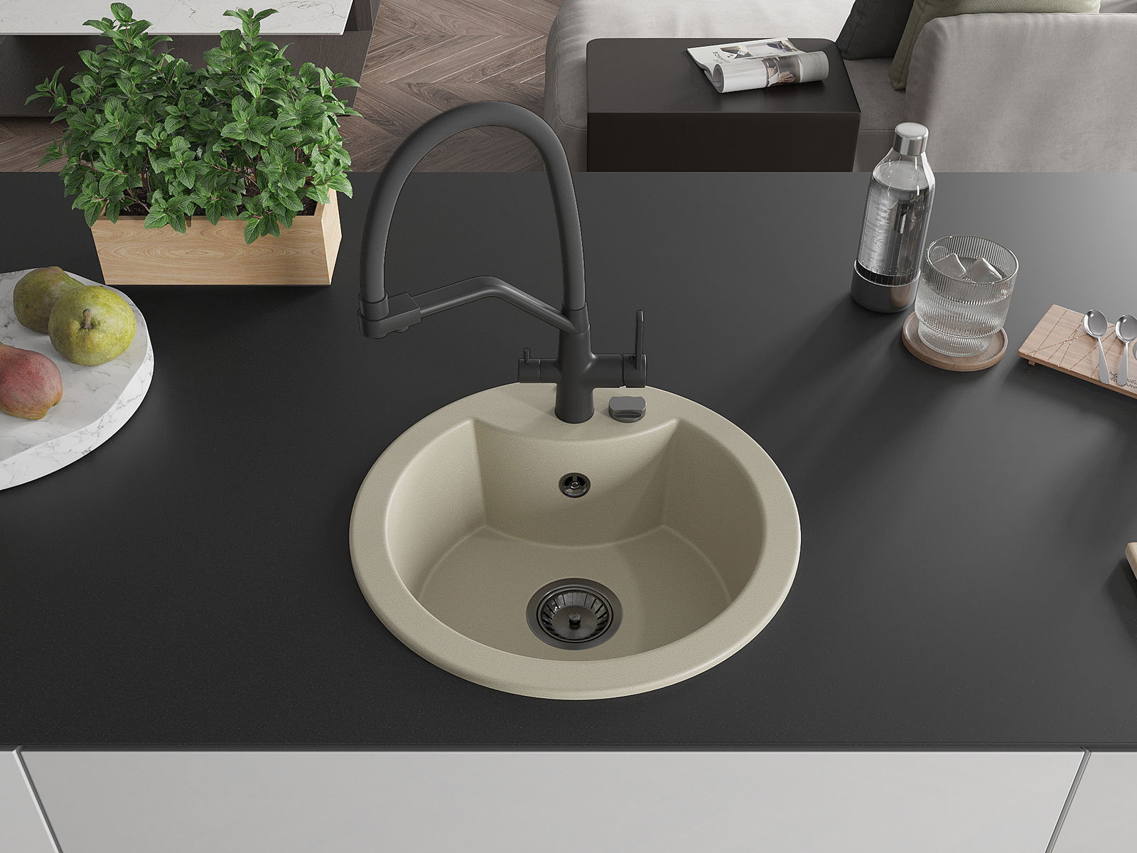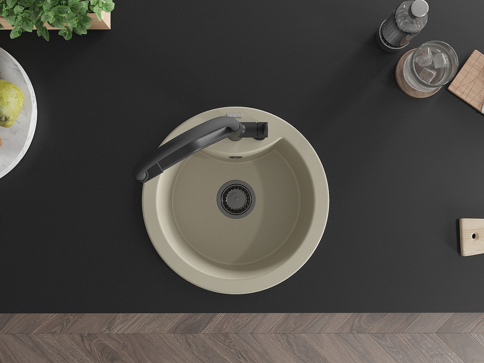 Kriauklės paviršius yra atsparūs dėmėms ir spalvos pasikeitimui, dėl kurio lengva valyti ir ilgą laiką išlaikyti savo spalvą. Estetinis ir praktiškai papildantis kiekvieną virtuvę.