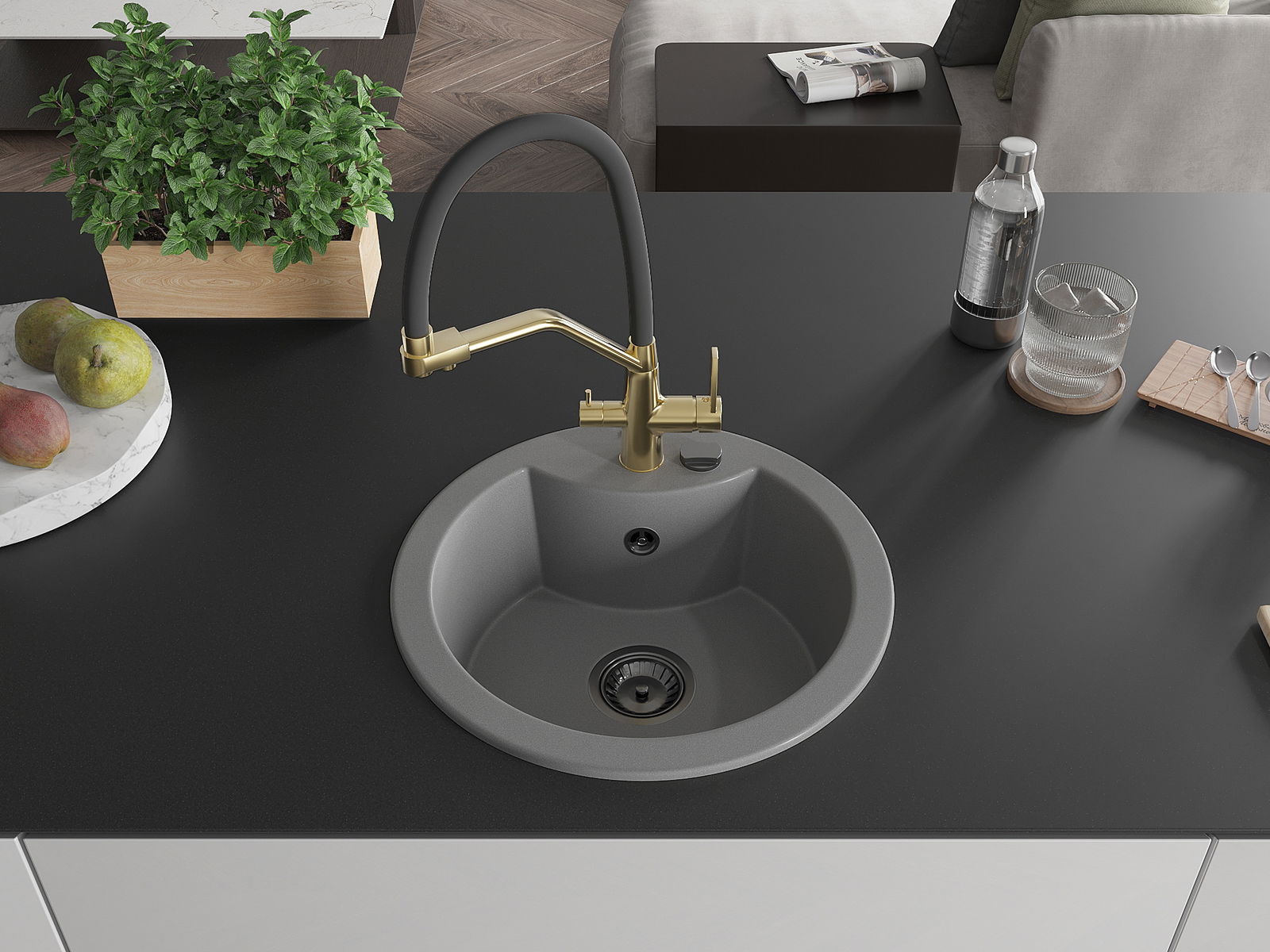 Kriauklės paviršius yra atsparūs dėmėms ir spalvos pasikeitimui, dėl kurio lengva valyti ir ilgą laiką išlaikyti savo spalvą. Estetinis ir praktiškai papildantis kiekvieną virtuvę.
