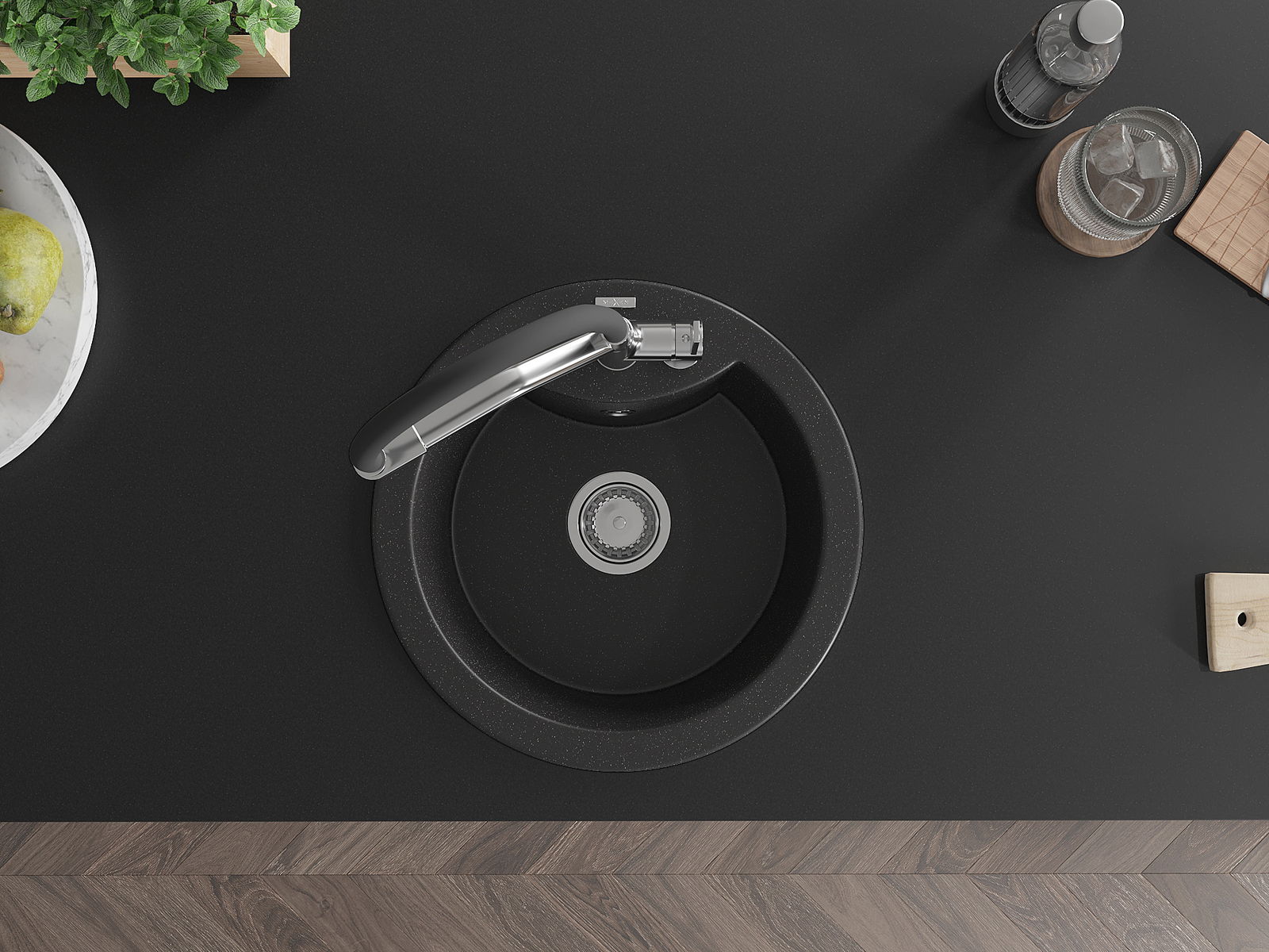 Mexen Diego 1-kompakto granito virtuvės plautuvė su Duo virtuvės maišytuvu, juoda/sidabrinė metalo spalva - 6512-73-671701-07