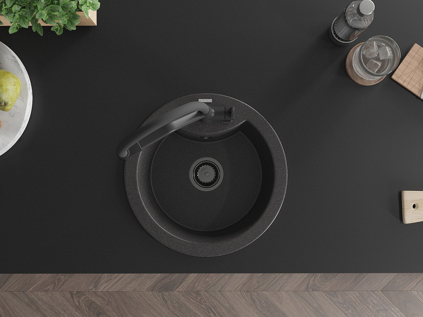 Mexen Diego granitinis virtuvės kriauklė 1-dalies su Duo virtuviniu maišytuvu, juodas su taškeliais - 6512-76-671701-70-B