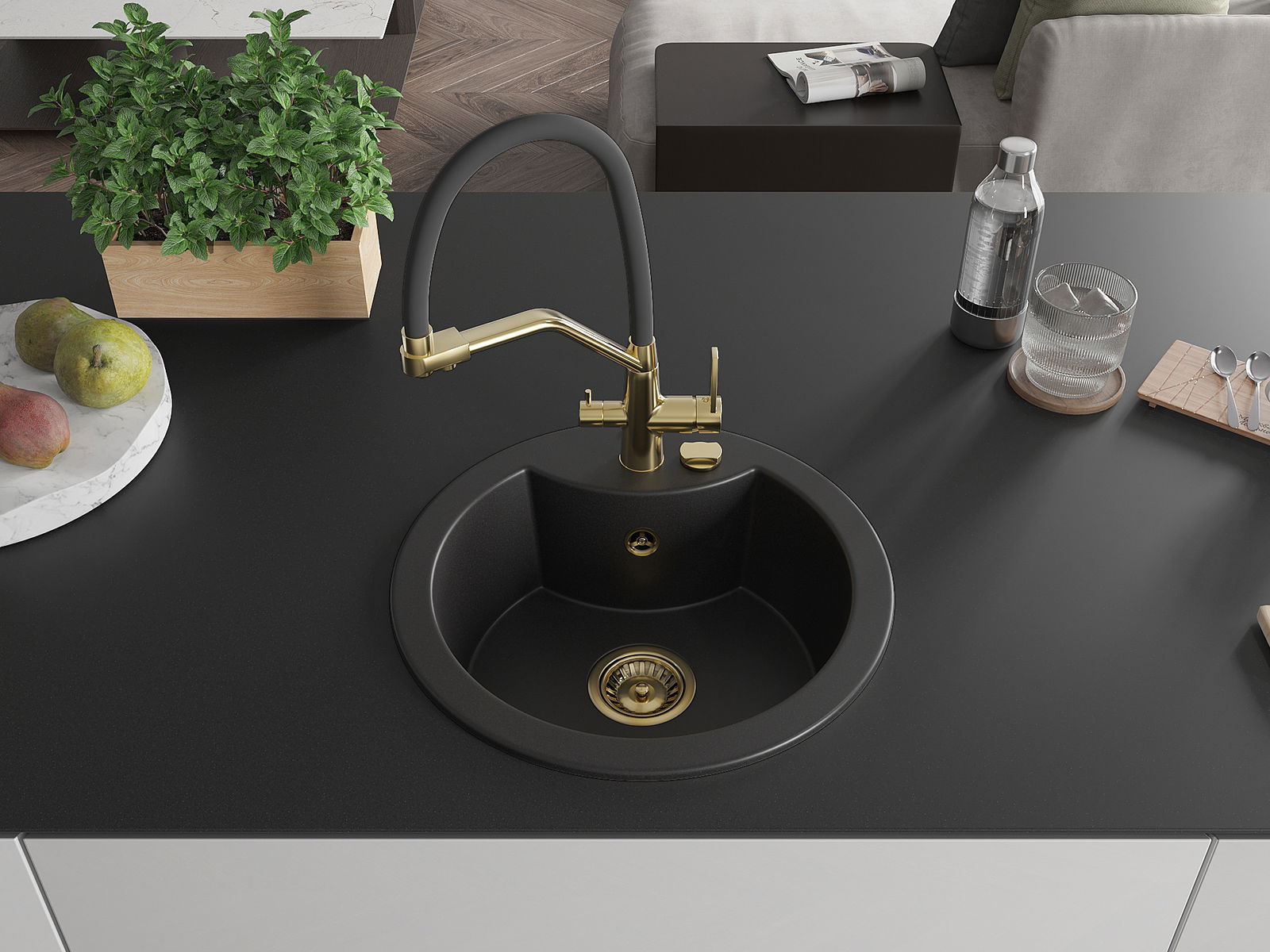 Kriauklės paviršius yra atsparūs dėmėms ir spalvos pasikeitimui, dėl kurio lengva valyti ir ilgą laiką išlaikyti savo spalvą. Estetinis ir praktiškai papildantis kiekvieną virtuvę.