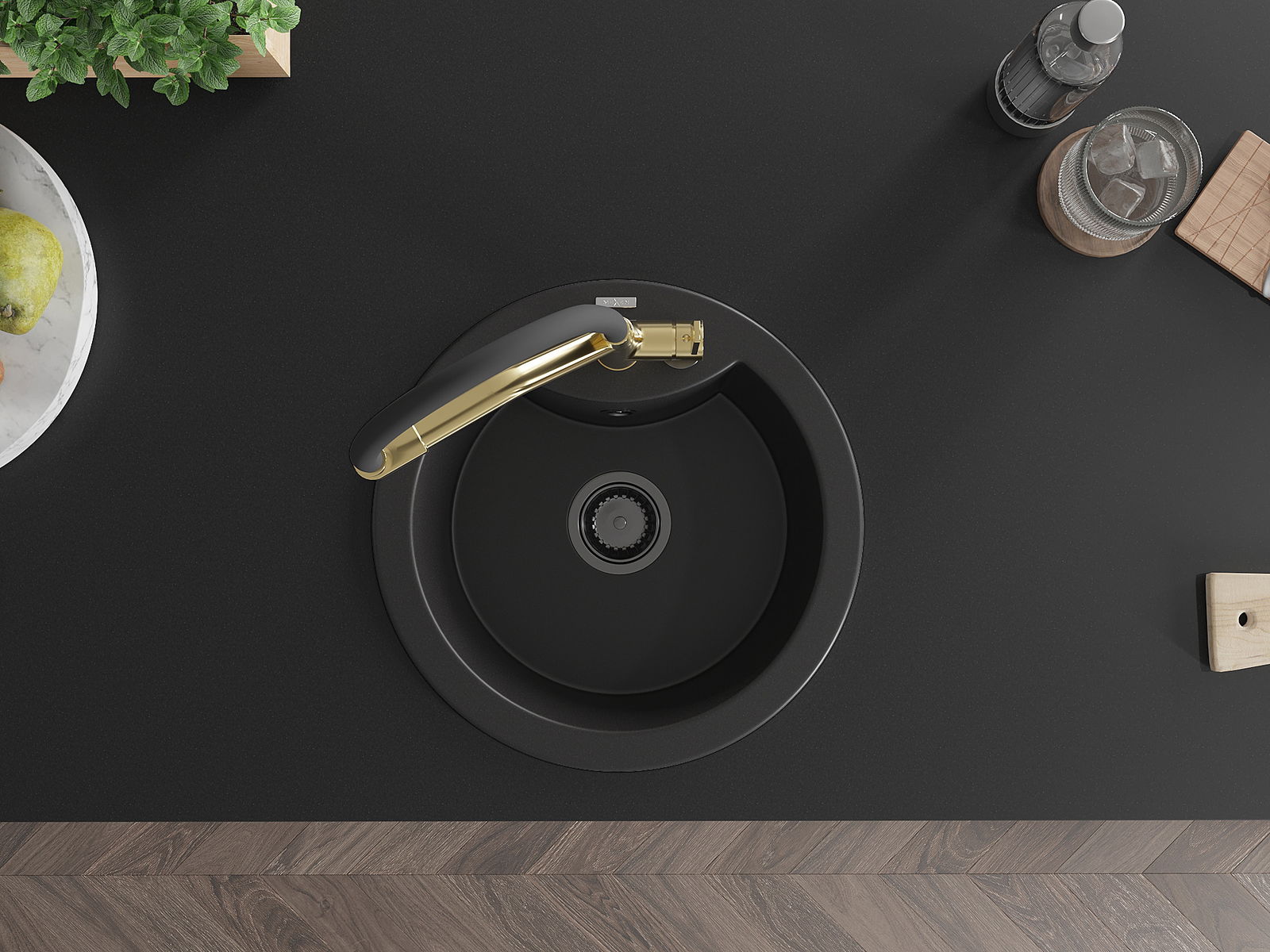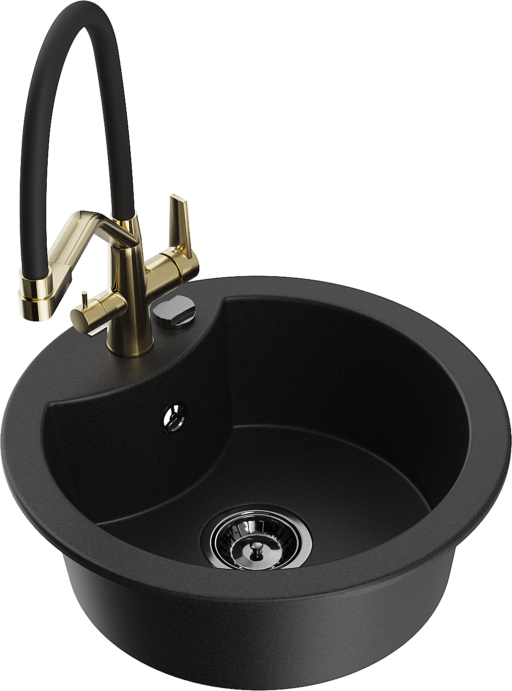 Kriauklė turi išfrezuotą angą, kurios skersmuo 35 mm, kad būtų galima savarankiškai išmušti. Ją galima panaudoti, pvz., montuojant skysto muilo dozatorių, kuris pašalins plastikinių butelių buvimą virtuvėje ir suteiks jai elegantišką apdailą.