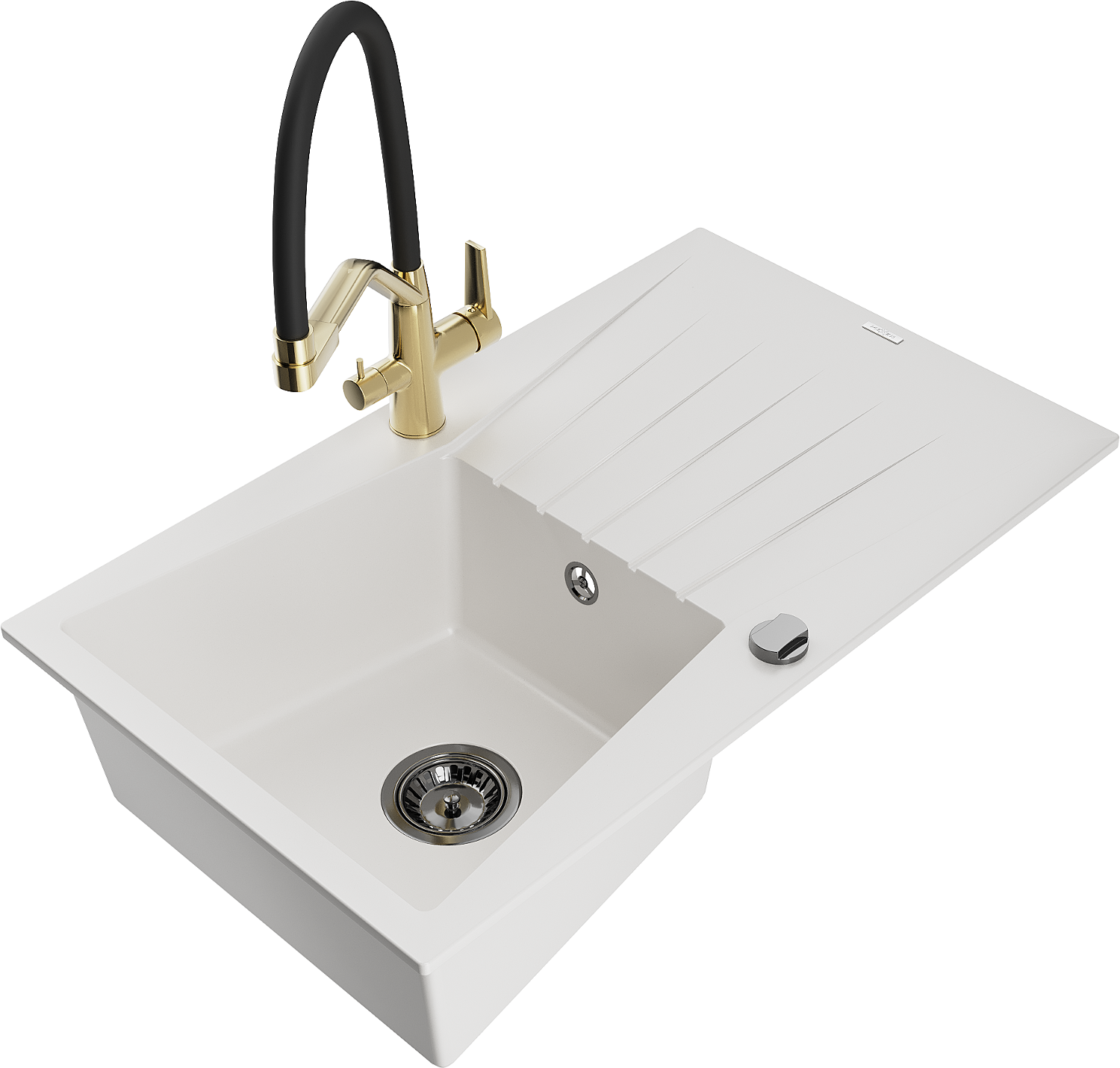 Mexen Cesar granitinė virtuvės plautuvė su įlaša ir Duo maišytuvu, balta - 6514-20-671701-57-B