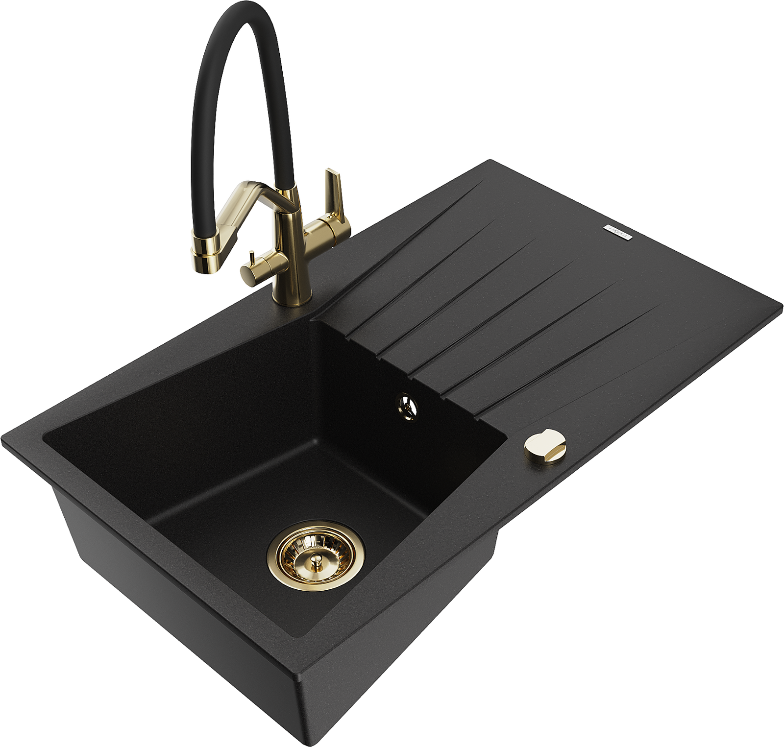 Mexen Cesar vienos kameros granitinis plautuvas su nutekėjimu ir Duo virtuviniu maišytuvu, juodas - 6514-77-671701-57-G