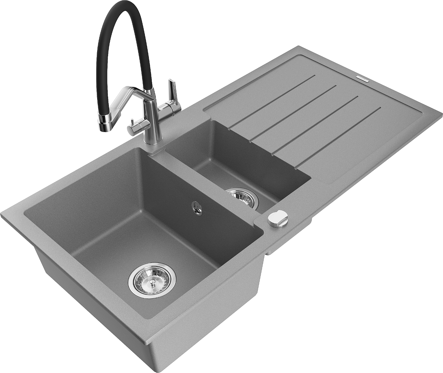 Mexen Andres granitinė 1,5 skyrių kriauklė su indaplove ir virtuviniu čiaupu Duo, pilka - 6515-71-671701-07