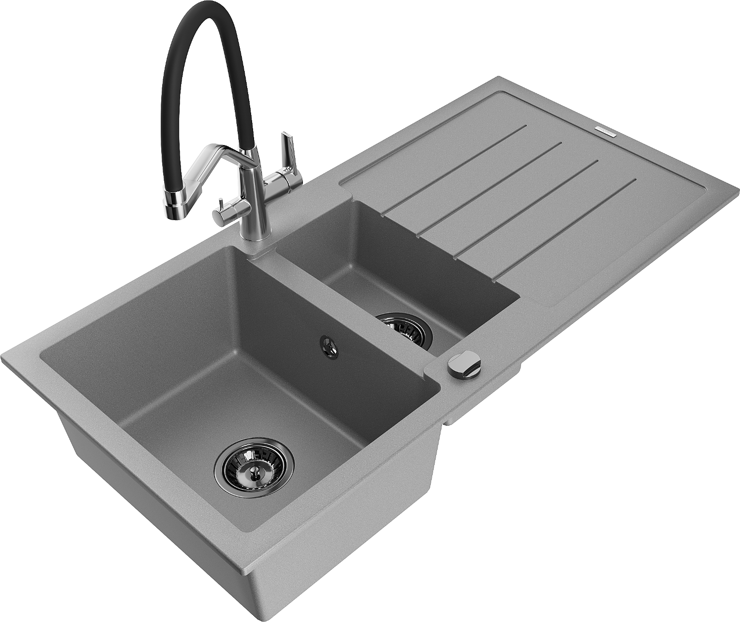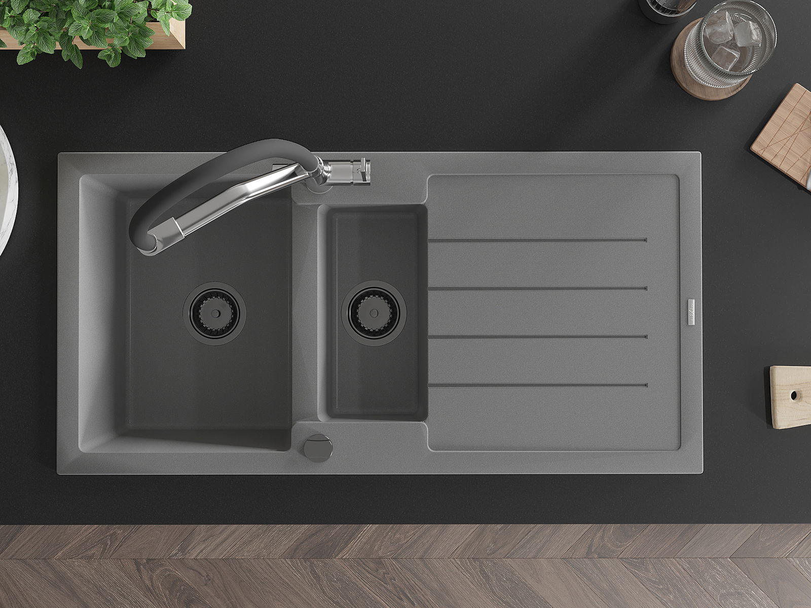 Mexen Andres granito plautuvė 1,5 skyrių su nuvarvėjimo paviršiumi ir Duo virtuviniu maišytuvu, pilka - 6515-71-671701-07-B