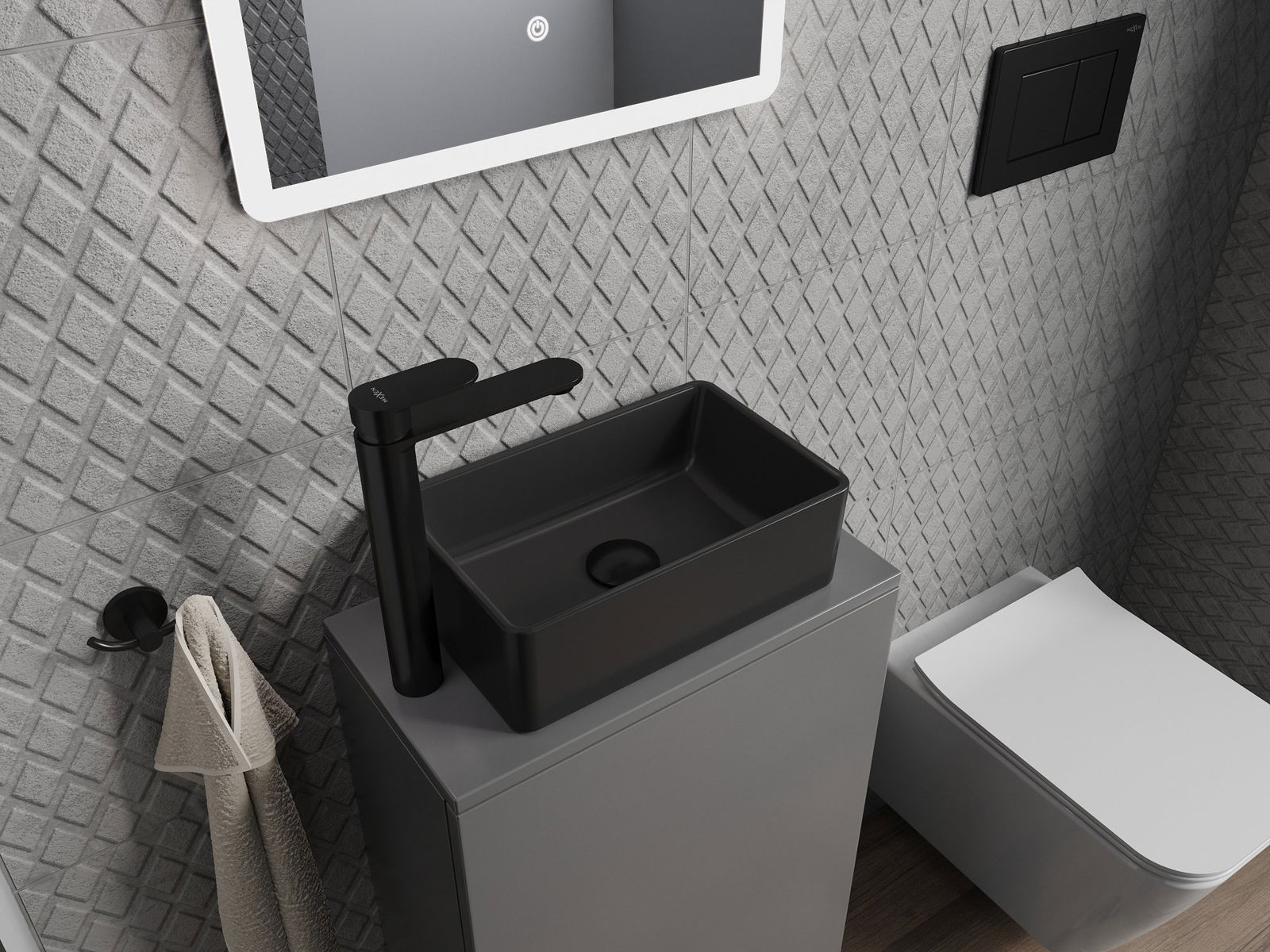 Matte keramikos paviršius puikiai pabrėžia produkto spalvos pobūdį, suteikdamas jai unikalų ir išraiškingą apdailą. Subtili matinės keramikos struktūra pristato eleganciją vonios kambaryje, sukurdama estetinę erdvę.