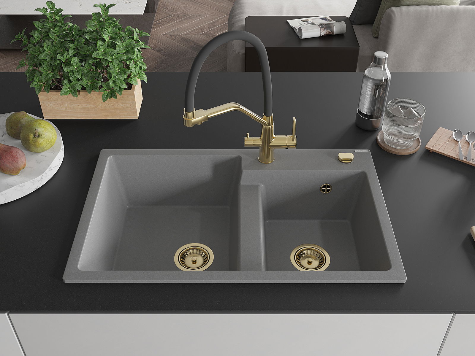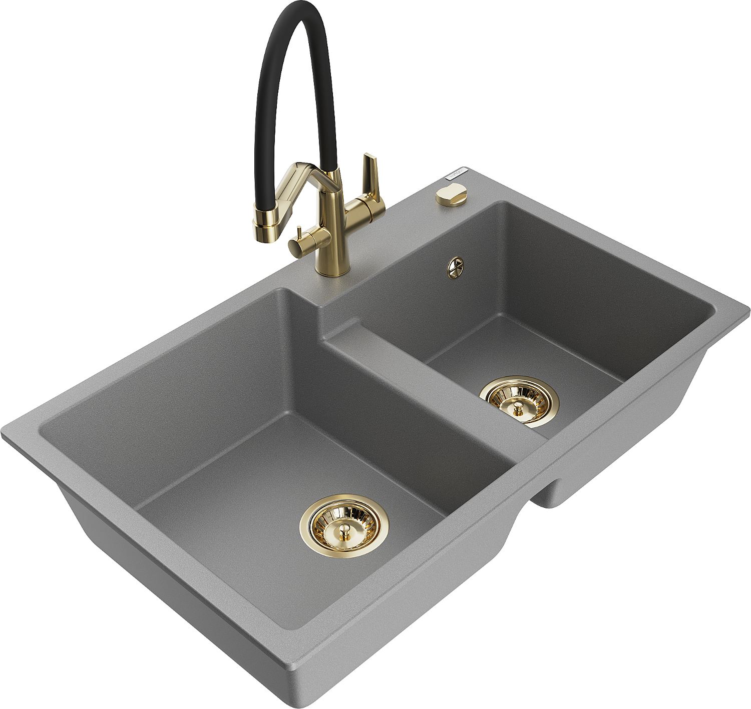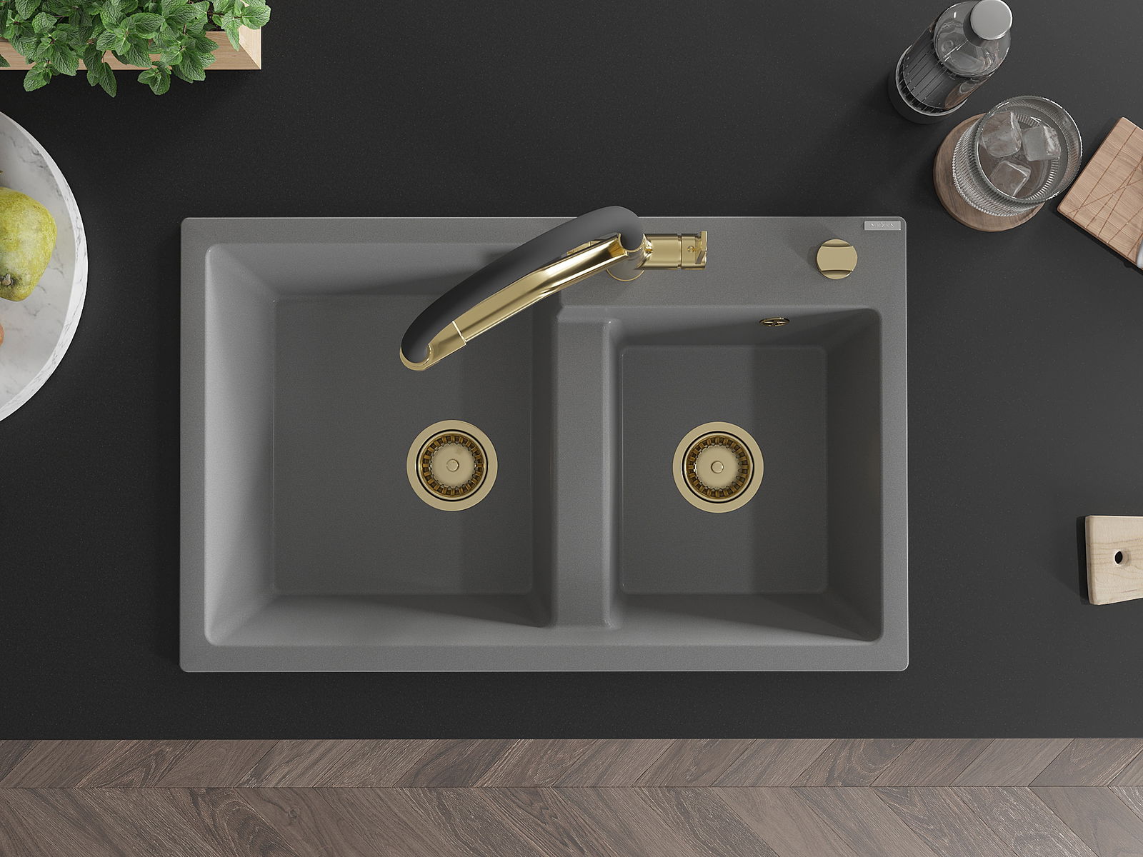 Mexen Tomas dviejų skyrių granito plautuvė su Duo virtuviniu maišytuvu, pilka - 6516-71-671701-57-G