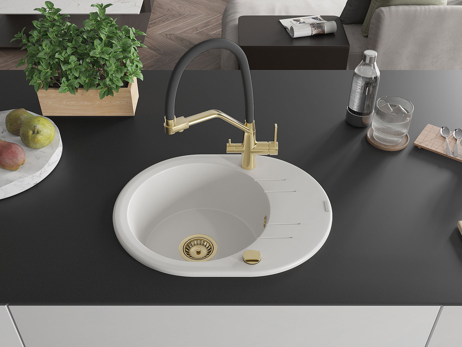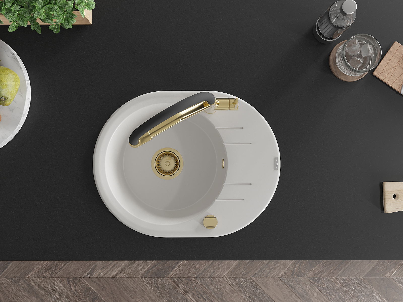 Kriauklės paviršius yra atsparūs dėmėms ir spalvos pasikeitimui, dėl kurio lengva valyti ir ilgą laiką išlaikyti savo spalvą. Estetinis ir praktiškai papildantis kiekvieną virtuvę.