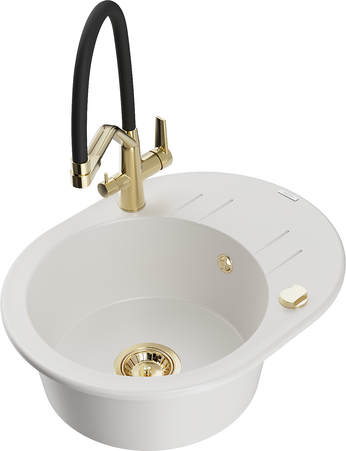 Mexen Kevin granitinis virtuvės kriauklė 1-dubens su Duo virtuviniu maišytuvu, balta - 6517-20-671701-57-G
