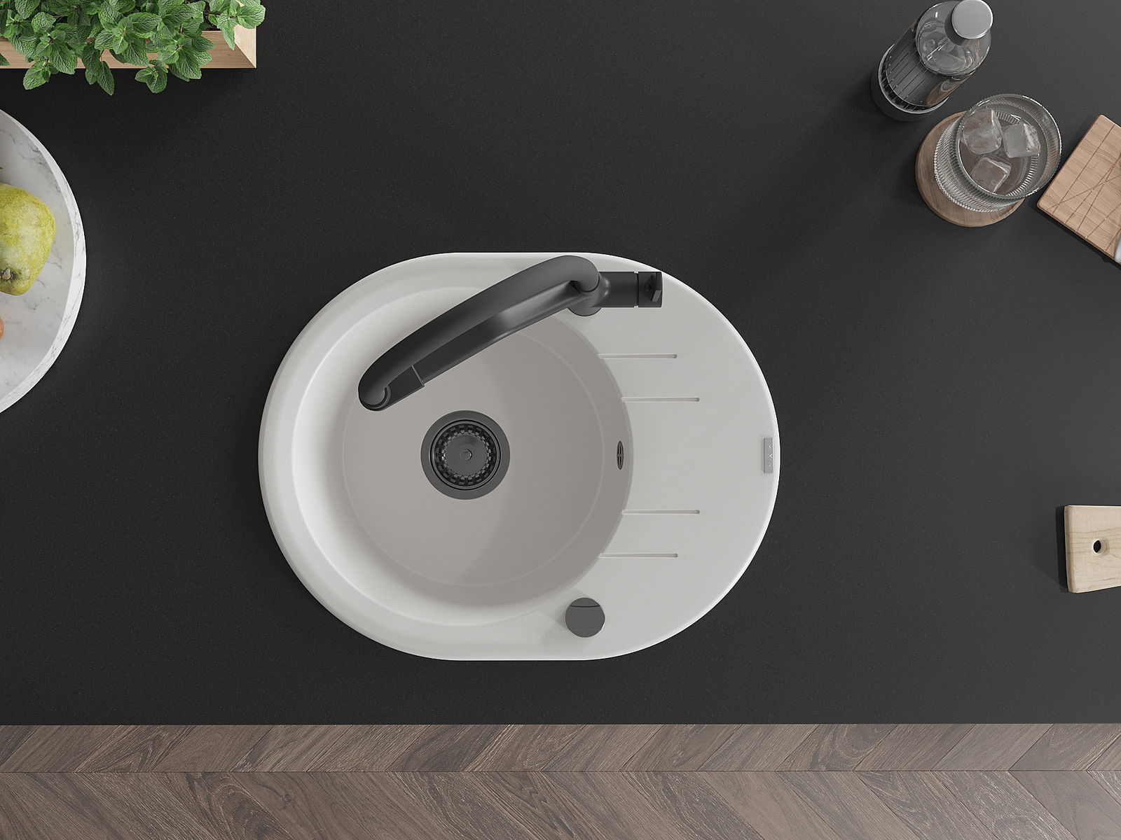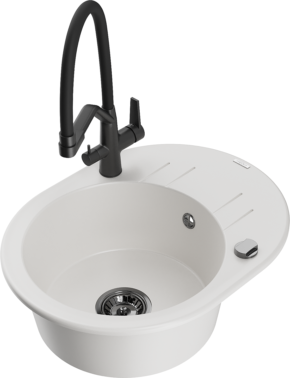 Mexen Kevin granito plautuvė vienos kameros su virtuviniu maišytuvu Duo, balta - 6517-20-671701-70-B