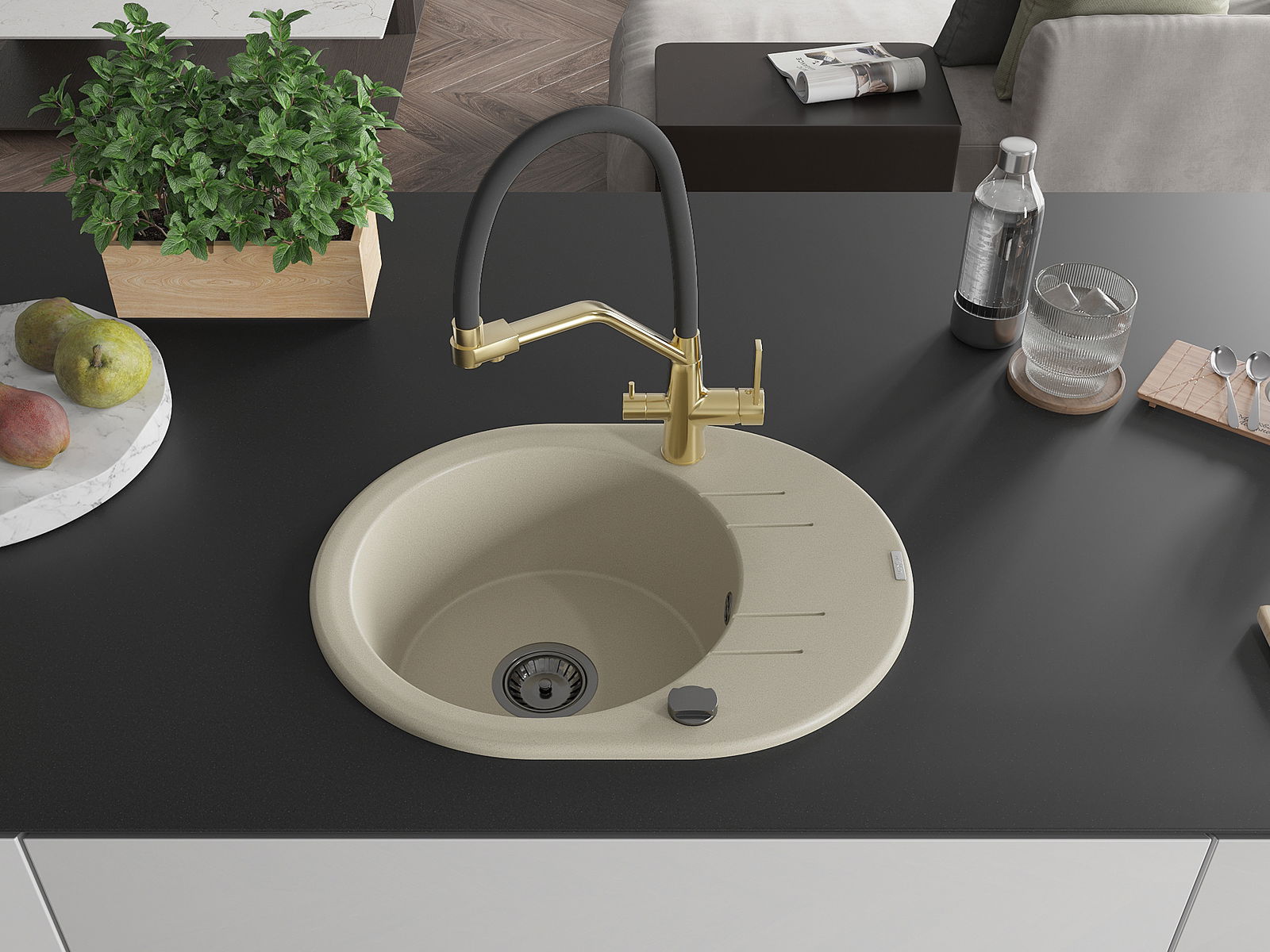 Kriauklės paviršius yra atsparūs dėmėms ir spalvos pasikeitimui, dėl kurio lengva valyti ir ilgą laiką išlaikyti savo spalvą. Estetinis ir praktiškai papildantis kiekvieną virtuvę.