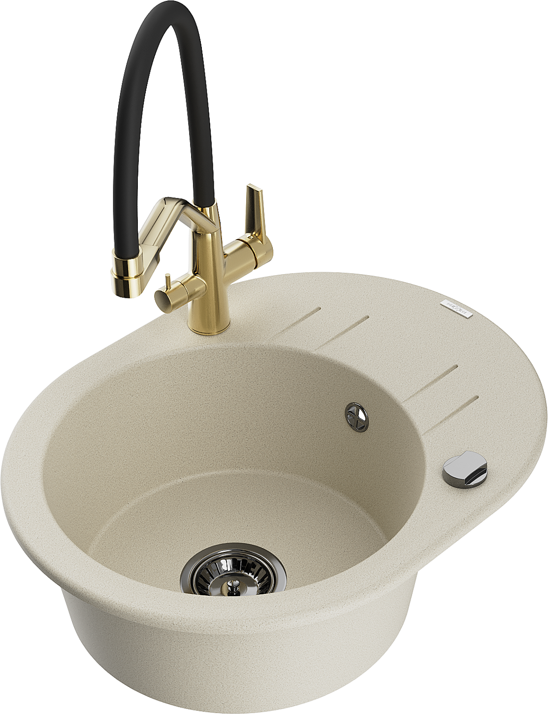 Mexen Kevin granitinė vieno dubens plautuvė su virtuviniu maišytuvu Duo, smėlio spalvos - 6517-69-671701-57-B