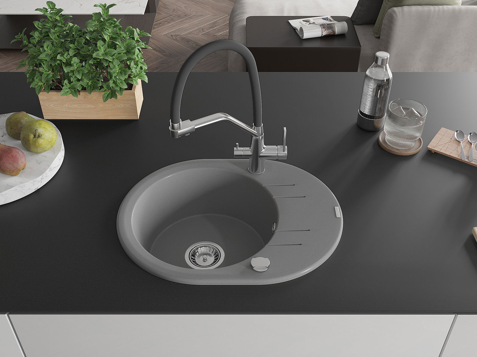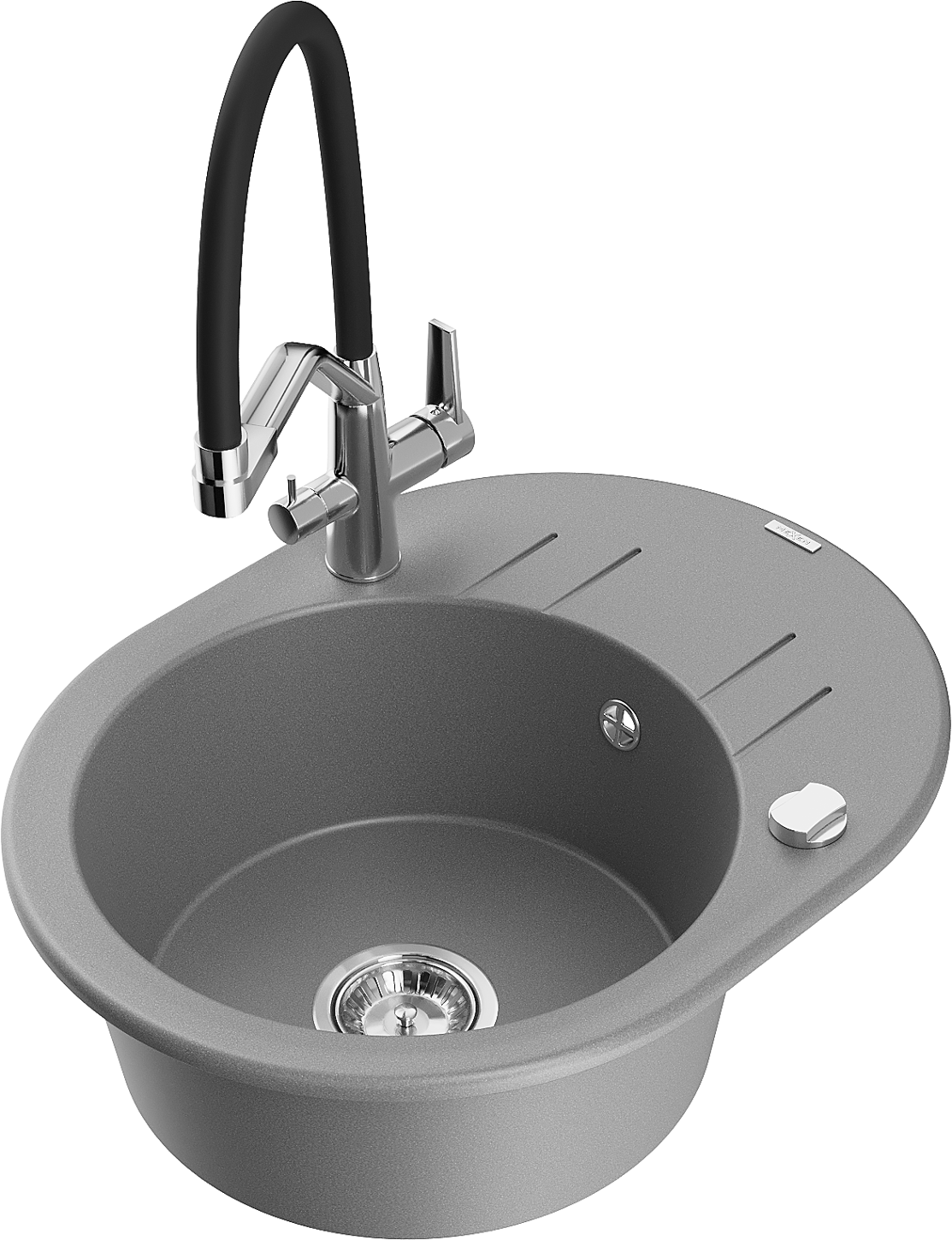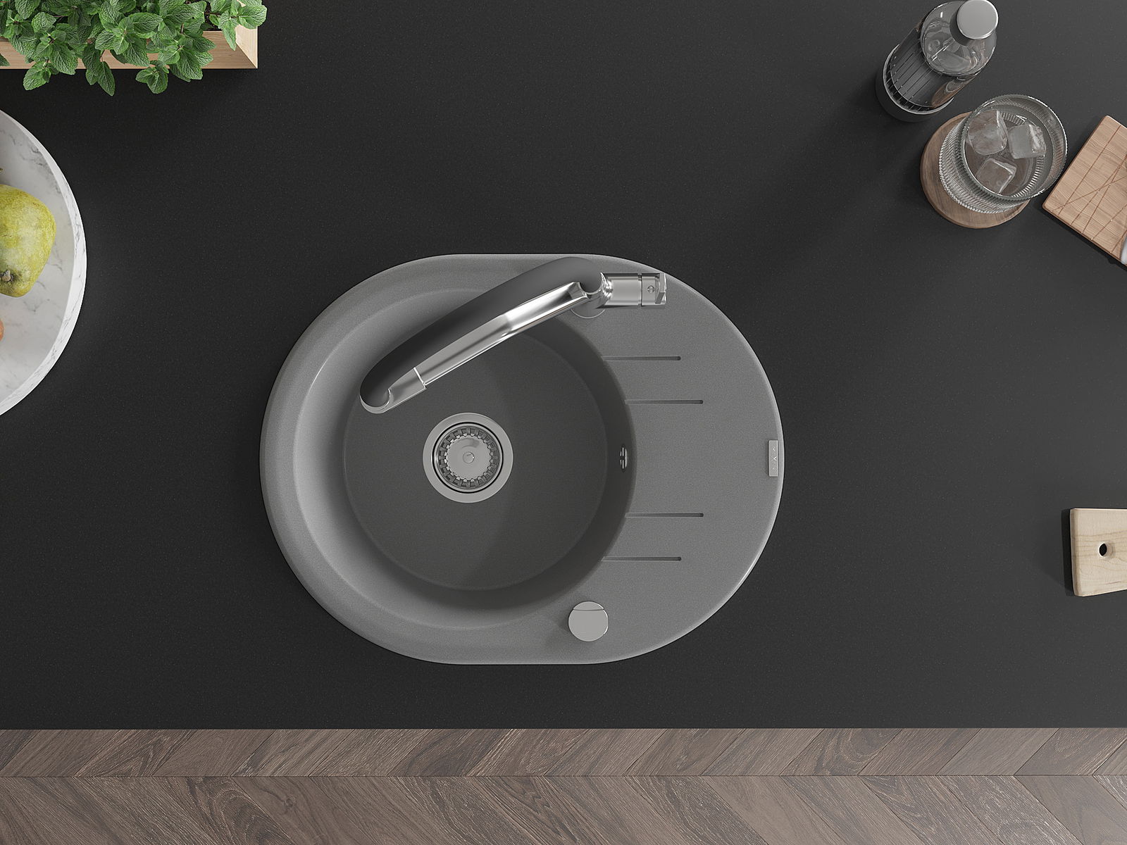 Mexen Kevin granitinis vienos dalies virtuvės plautuvas su maišytuvu Duo, pilkas - 6517-71-671701-07