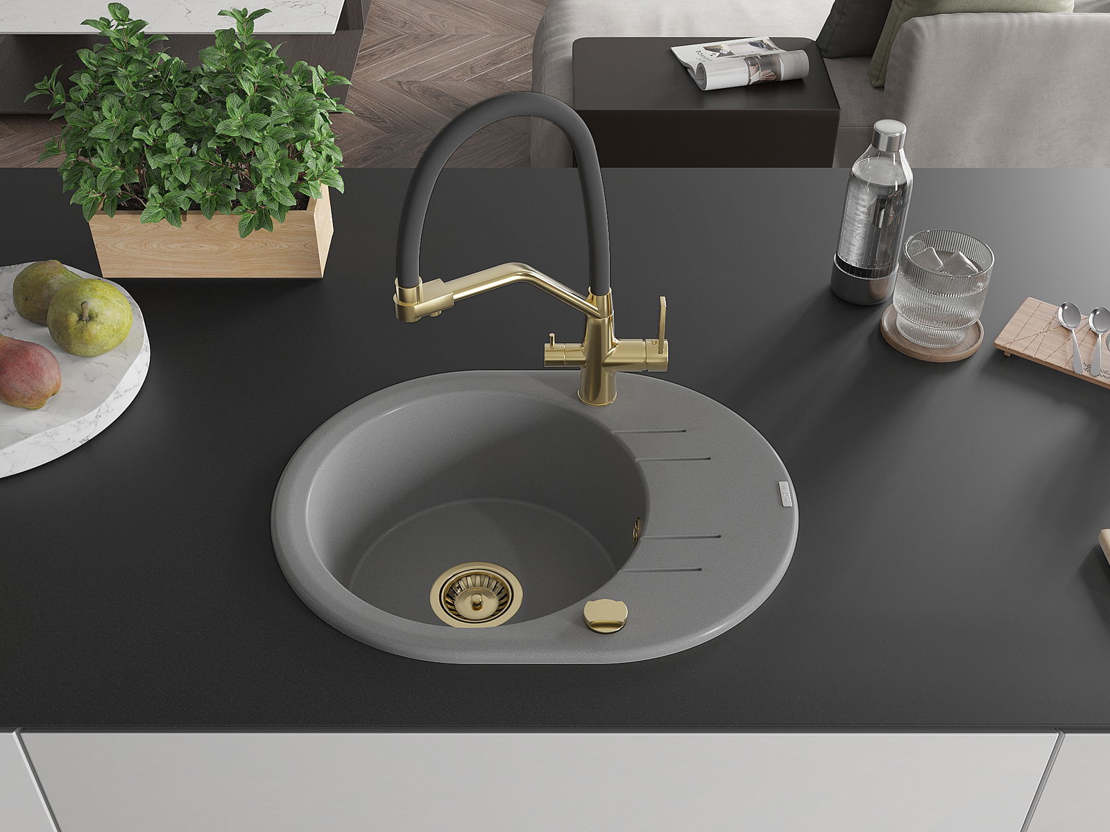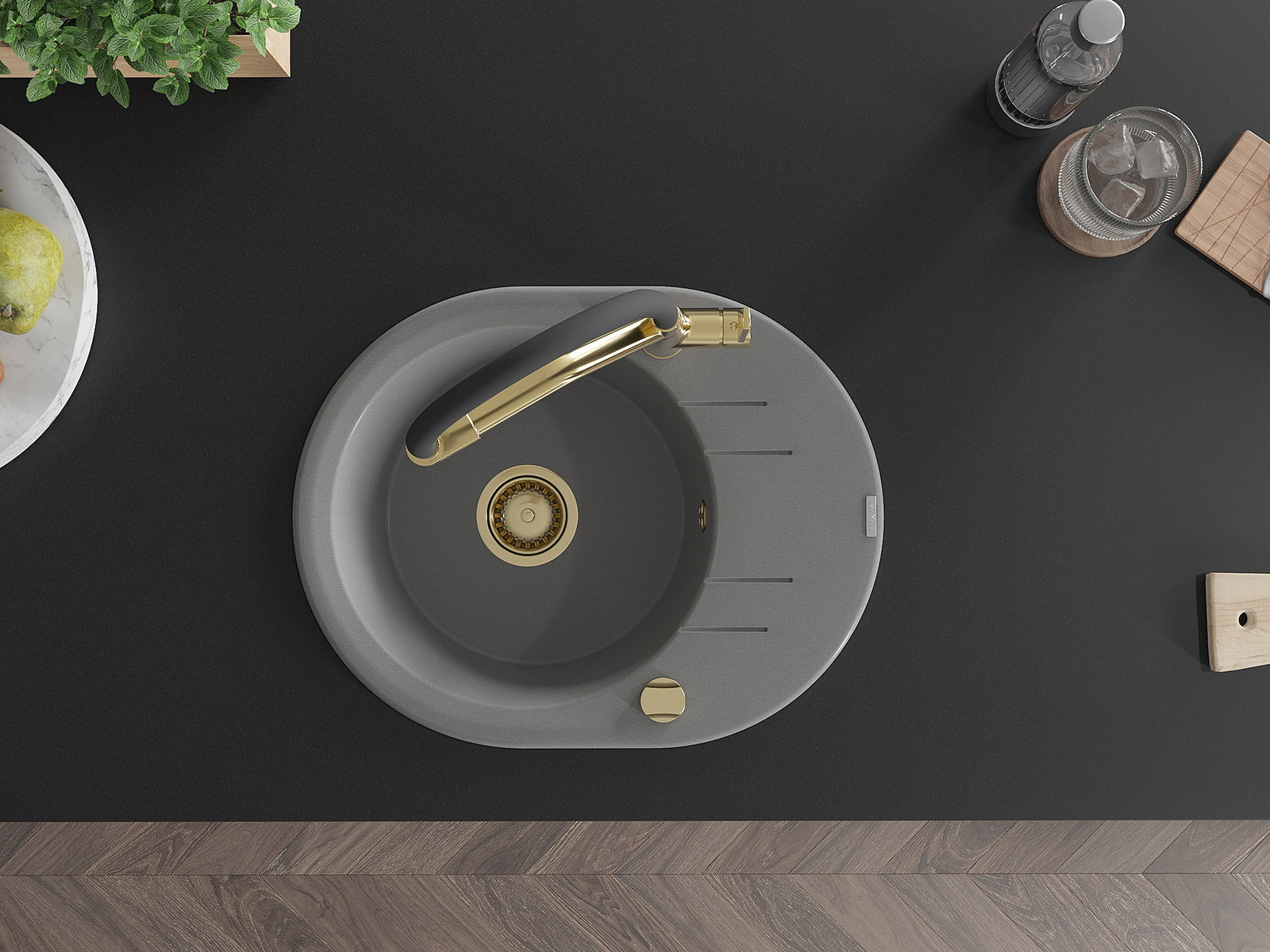 Mexen Kevin granitinė vienos plautuvės kriauklė su virtuviniu maišytuvu Duo, pilka - 6517-71-671701-57-G