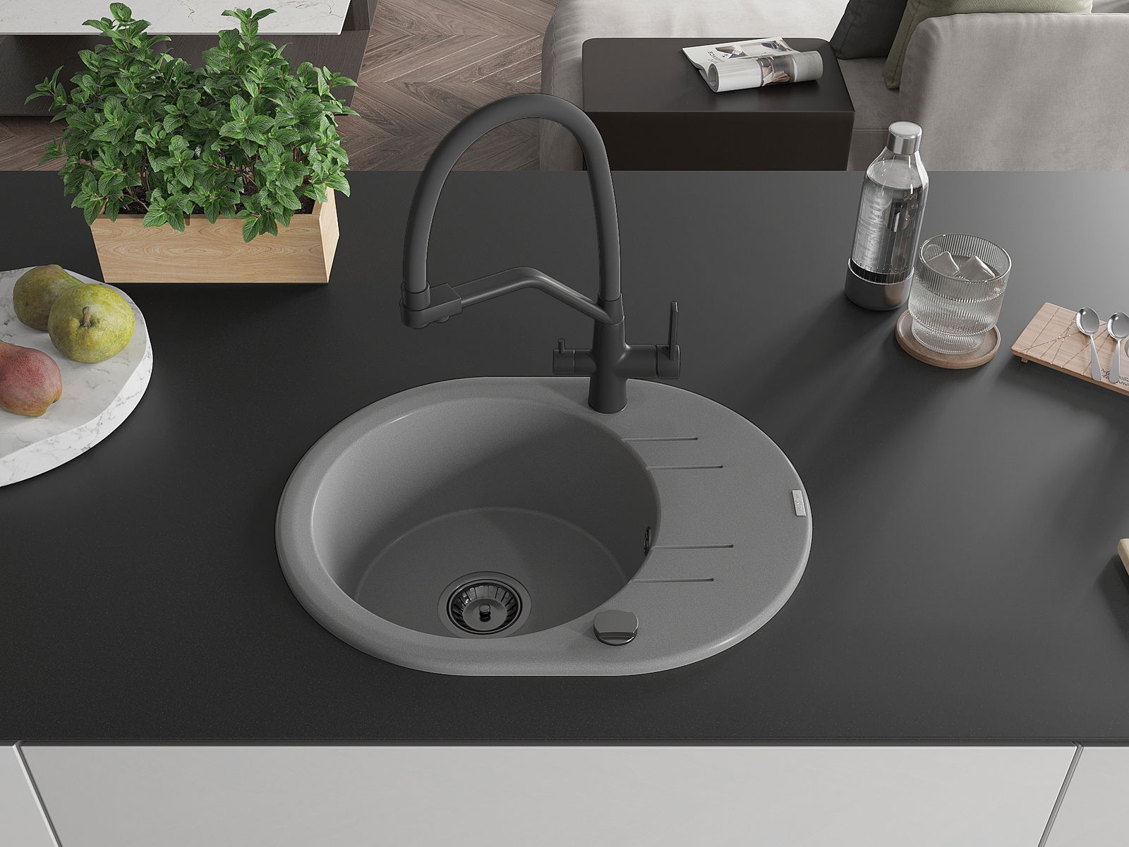 Kriauklės paviršius yra atsparūs dėmėms ir spalvos pasikeitimui, dėl kurio lengva valyti ir ilgą laiką išlaikyti savo spalvą. Estetinis ir praktiškai papildantis kiekvieną virtuvę.