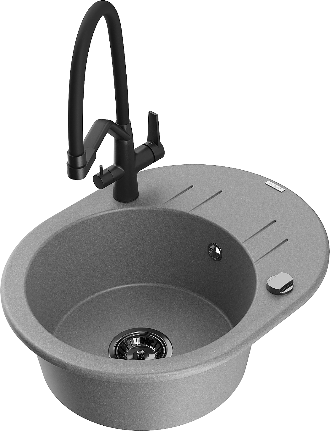 Mexen Kevin granitinis virtuvės plautuvė 1 skyriumi su Duo maišytuvu, pilka - 6517-71-671701-70-B