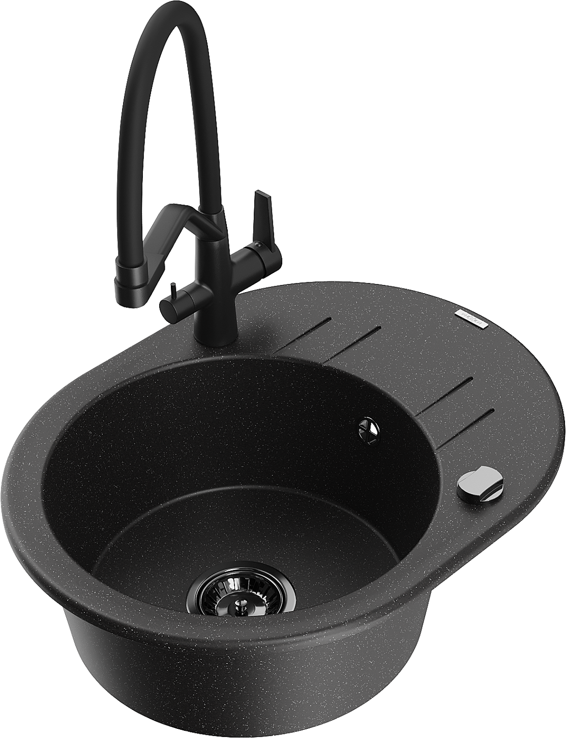 Mexen Kevin 1 kamerų granitinis plautuvas su Duo virtuviniu maišytuvu, juodas/sidabrinis metalikas - 6517-73-671701-70-B