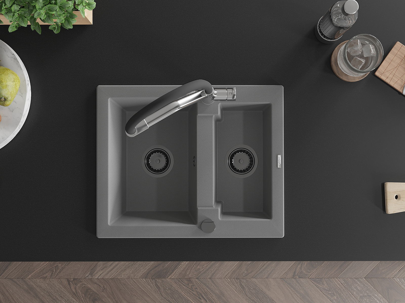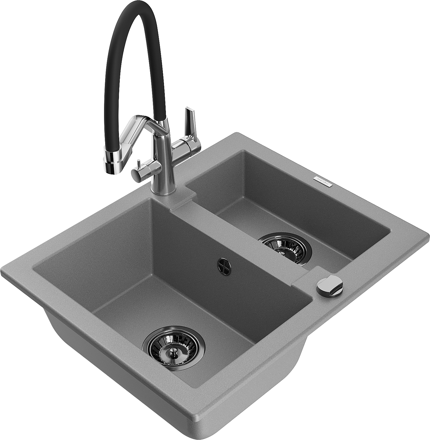 Mexen Carlos granitinė virtuvės kriauklė 1,5 sekcijų su Duo virtuviniu maišytuvu, pilka - 6518-71-671701-07-B