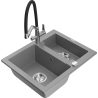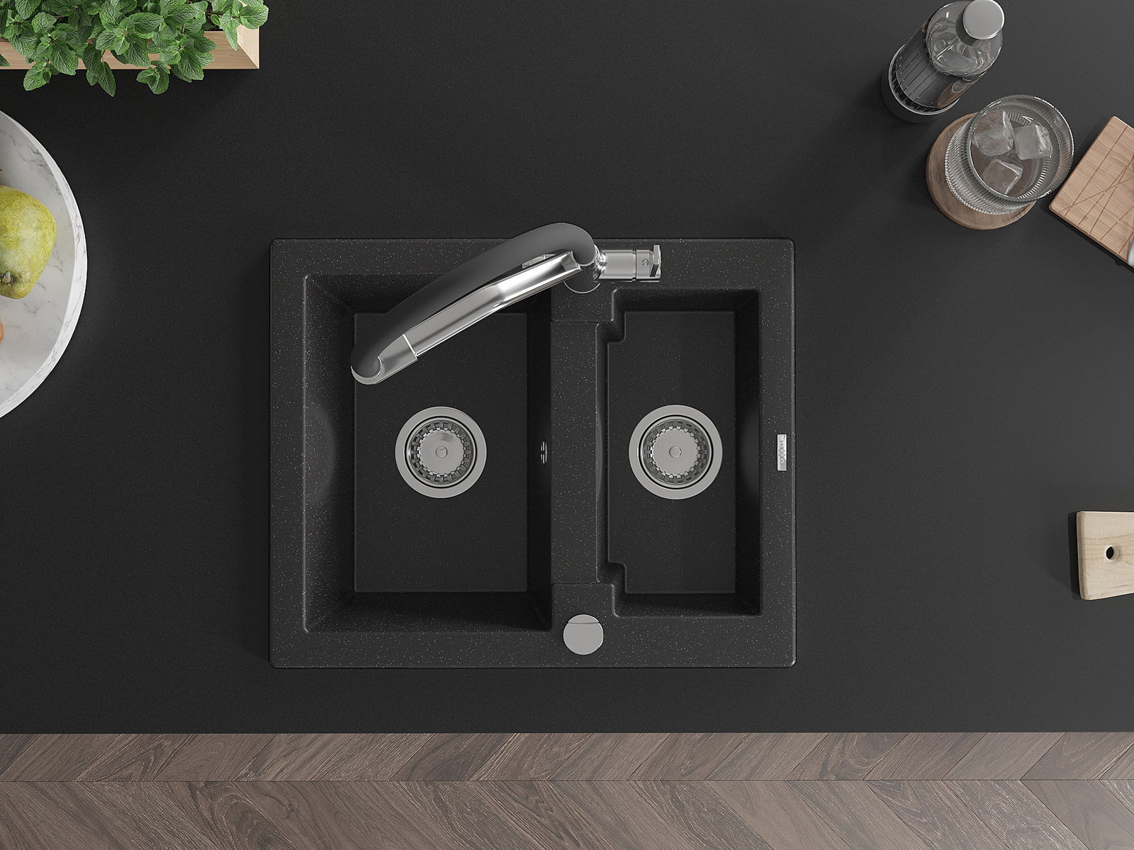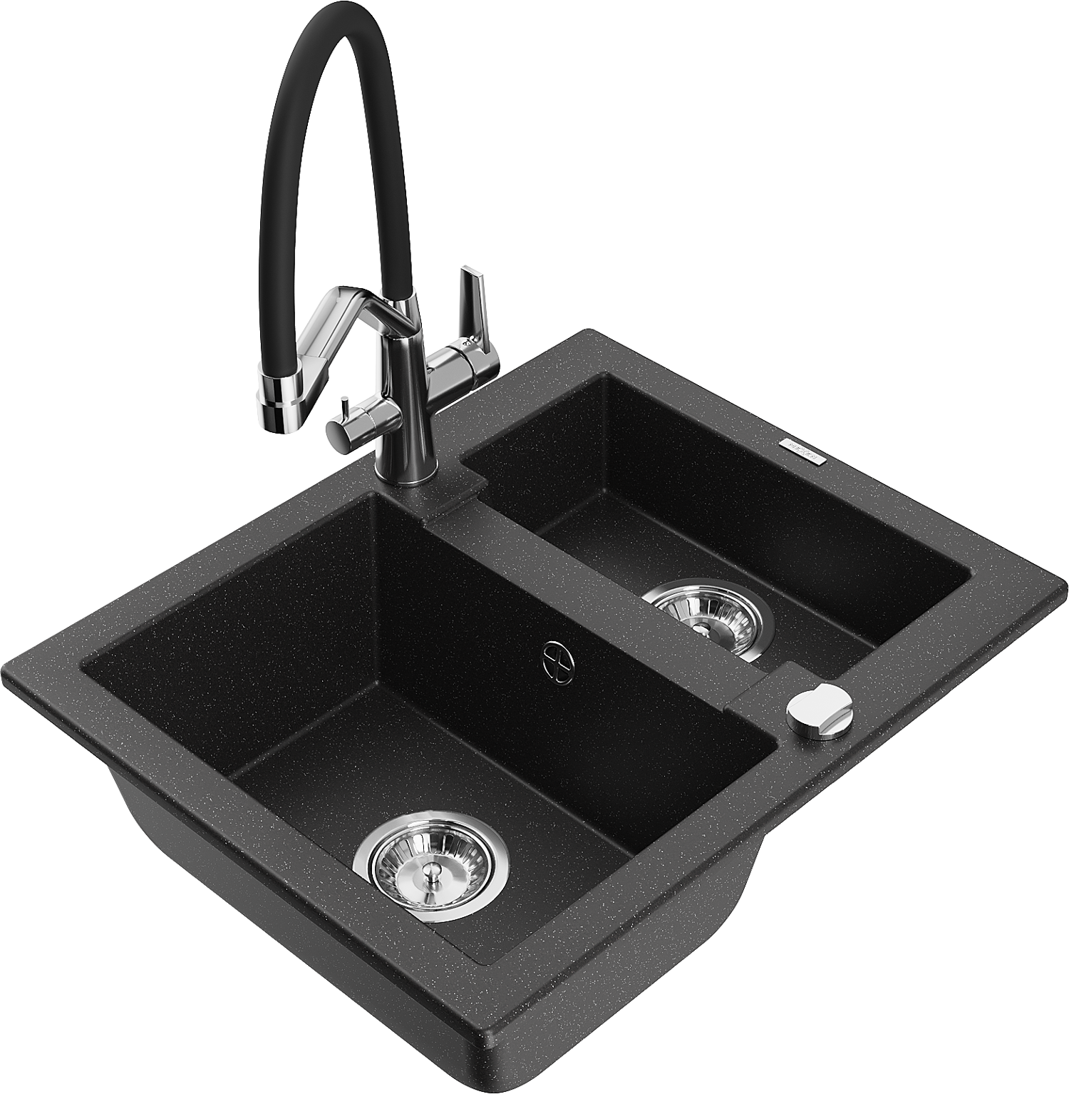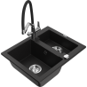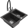 Mexen Carlos granitinis 1,5 sekcijos virtuvės kriauklė su Duo maišytuvu, juodas/sidabrinis metalikas - 6518-73-671701-07
