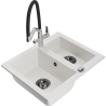 Mexen Carlos granitinė 1,5 skylių kriauklė su Duo virtuviniu maišytuvu, juoda/sidabrinė metalika - 6518-73-671701-07-B