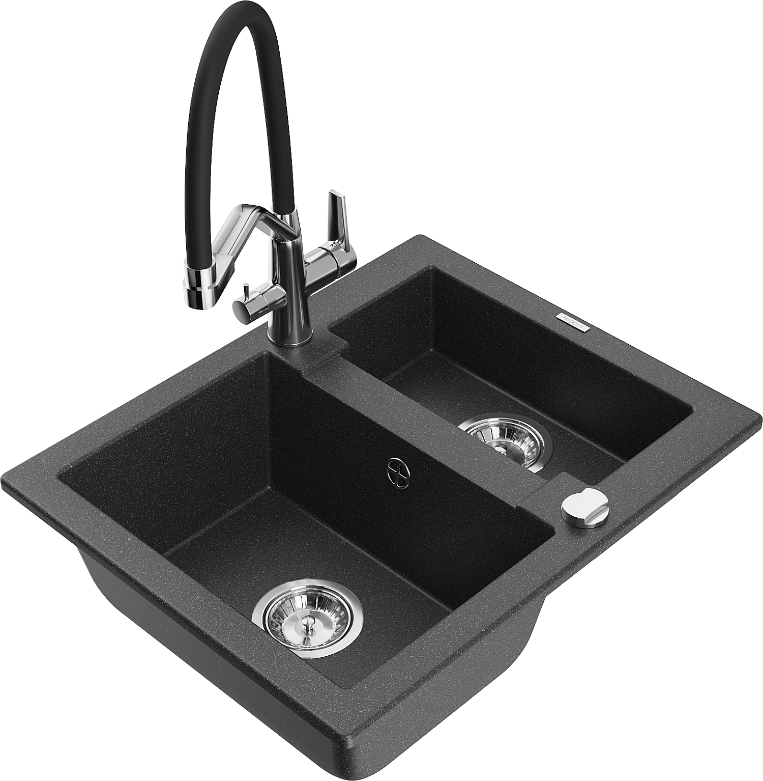Mexen Carlos granitinis virtuvės kriauklė 1,5-dubens su Duo maišytuvu, juodas taškuotas - 6518-76-671701-07