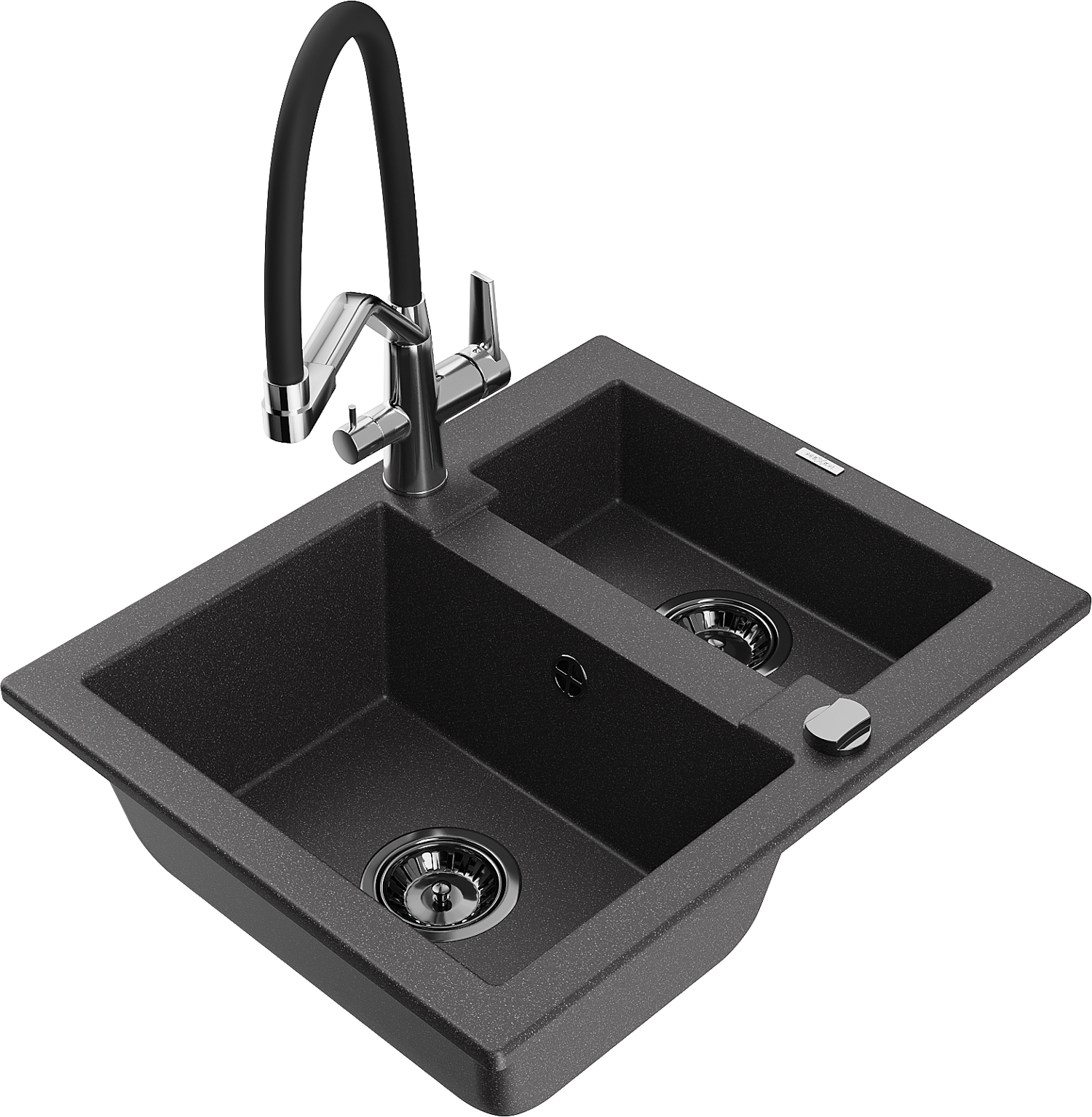Mexen Carlos granitinis kriauklė su 1,5 kameromis ir Duo virtuviniu maišytuvu, juodas su dėmėmis - 6518-76-671701-07-B
