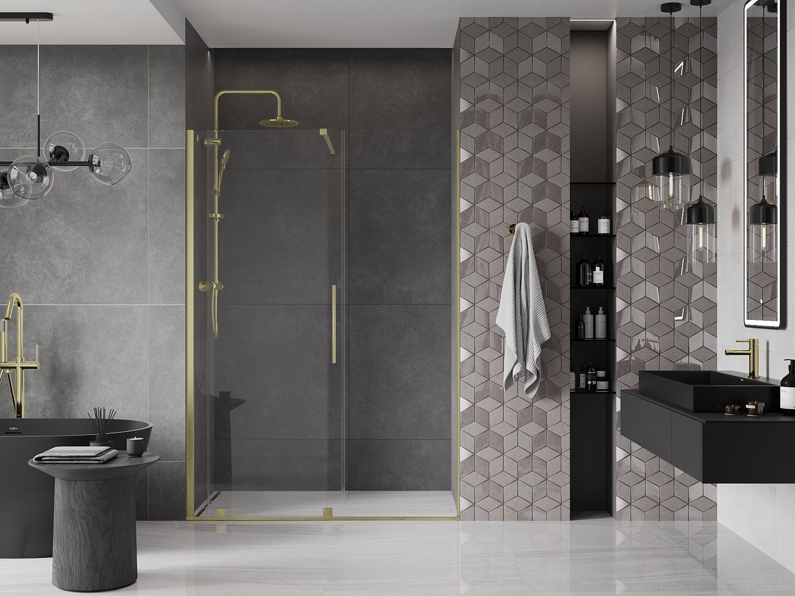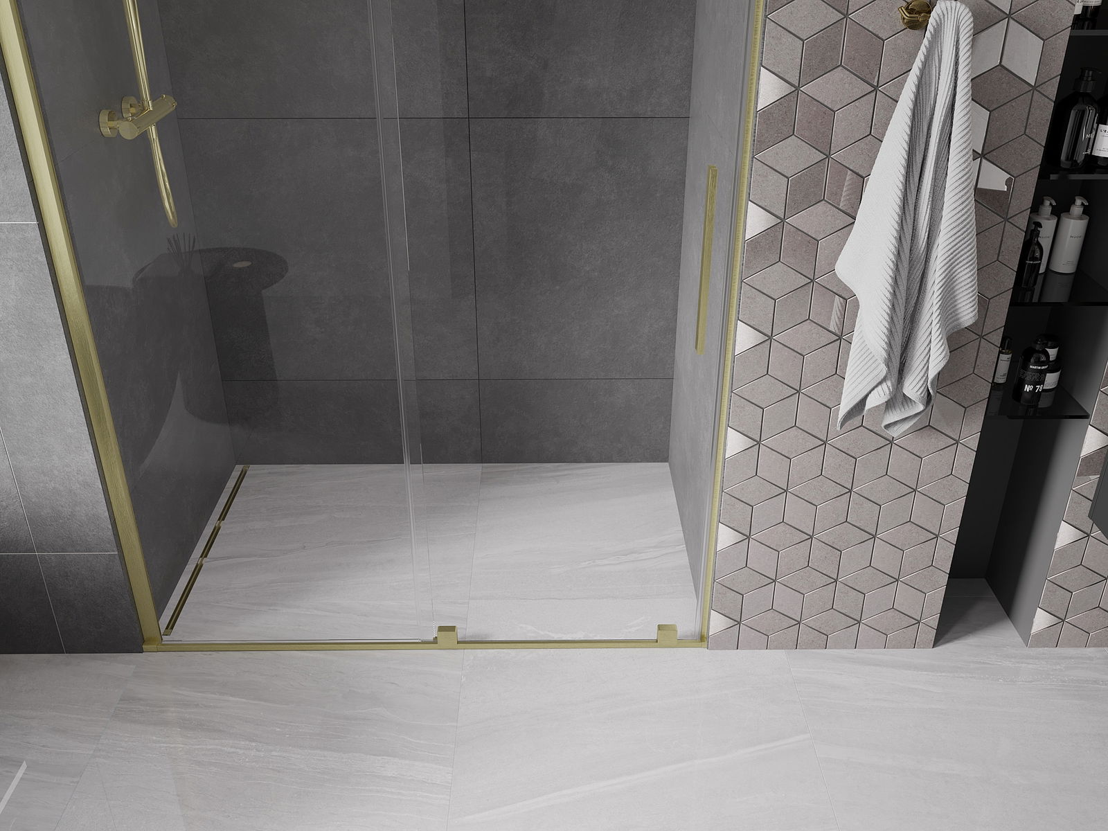 Mexen Velar stumdomosios dušo durys 160 cm, permatomos, aukso spalvos šlifuotos - 871-160-000-01-55