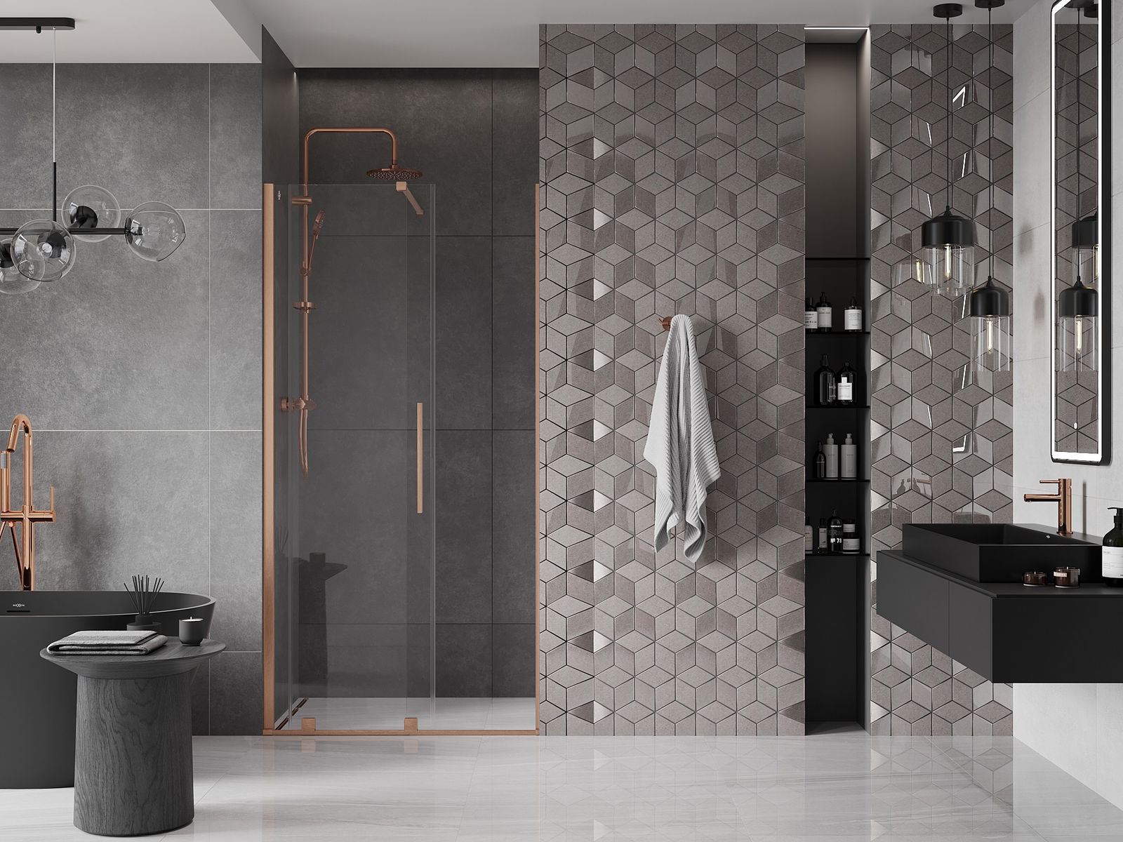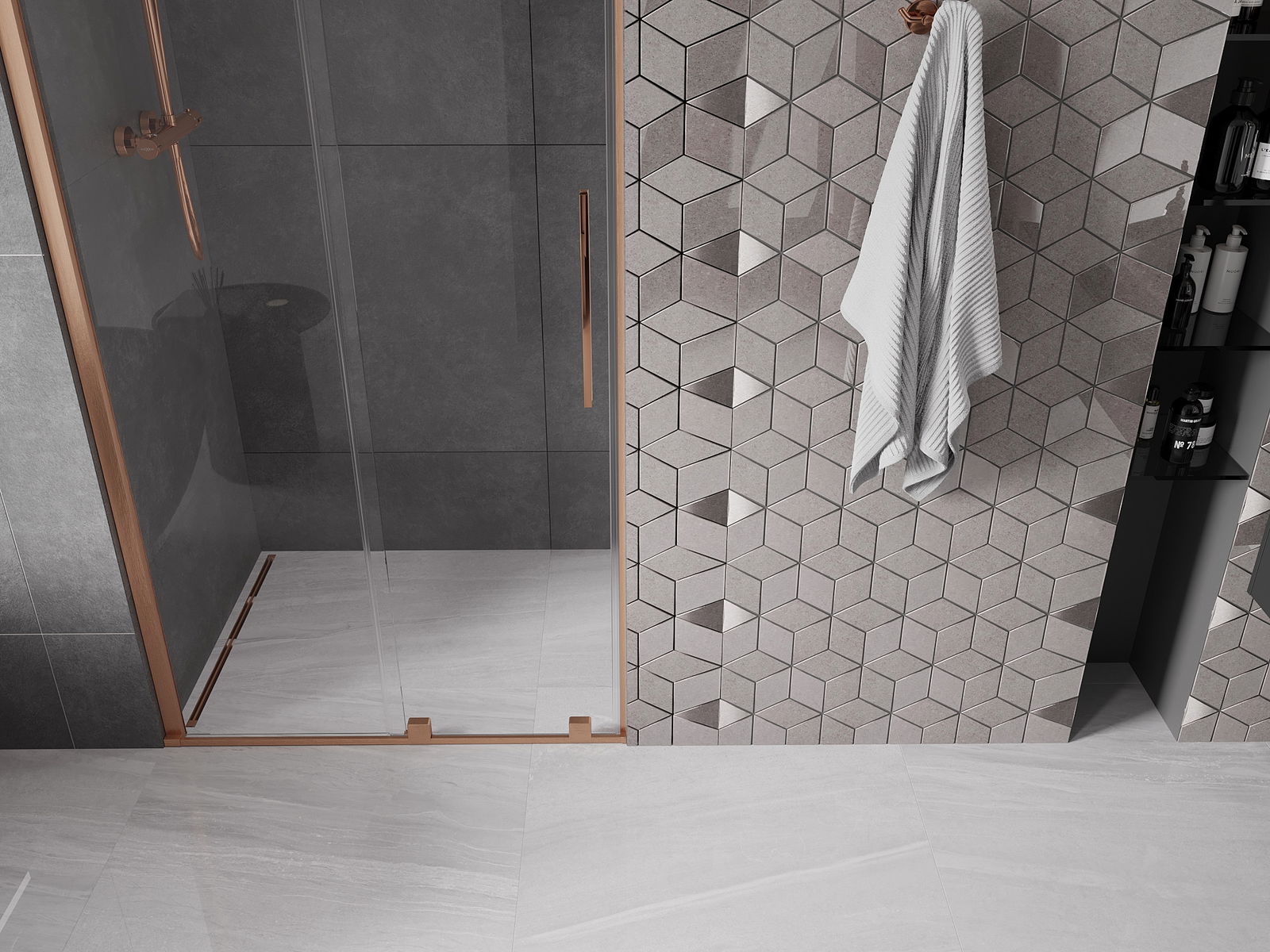 Mexen Velar stumdomosios dušo durys 90 cm, skaidrus, šlifuotas varis - 871-090-000-01-65