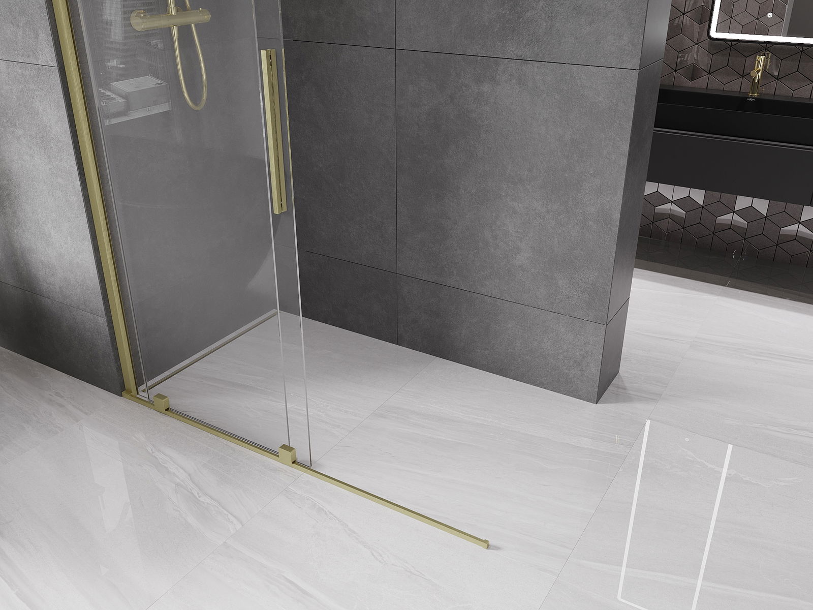 Mexen Velar stumdomoji dušo sienelė Walk-in 160 x 200 cm, skaidri 8 mm, auksinė matinė - 871-160-000-03-55