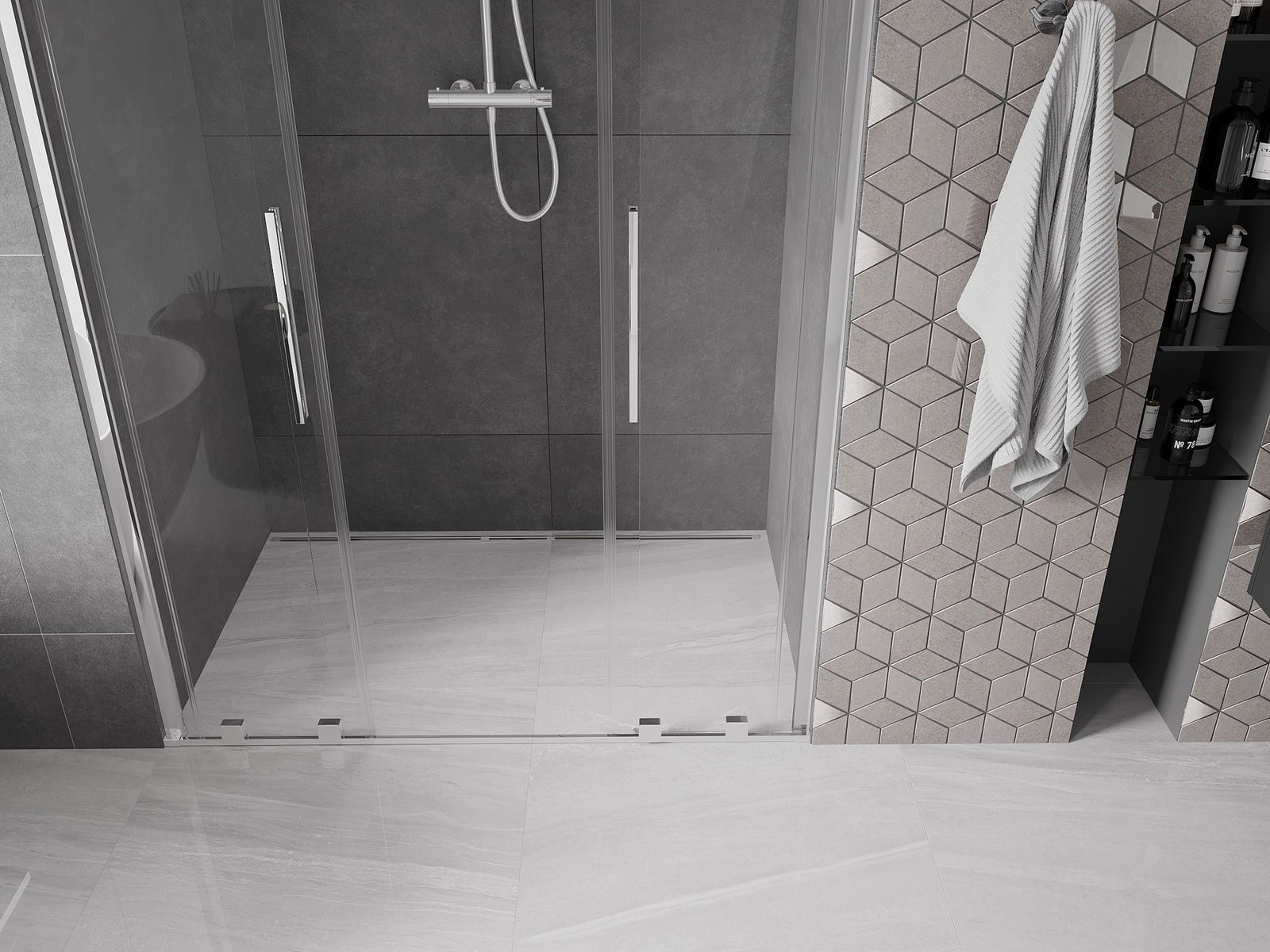 Dėl universalios tvirtinimo sistemos naudojimo dušo durys gali būti pritvirtintos dešinėje arba kairėje, atsižvelgiant į jūsų poreikius. To dėka galite lengvai suprojektuoti dušą, pritaikytą vonios kambario erdvei.
