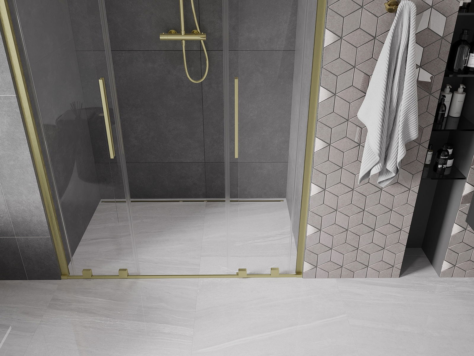 Mexen Velar Duo stumdomos dušo durys 150 cm, permatomos, šlifuotos auksinės - 871-150-000-02-55