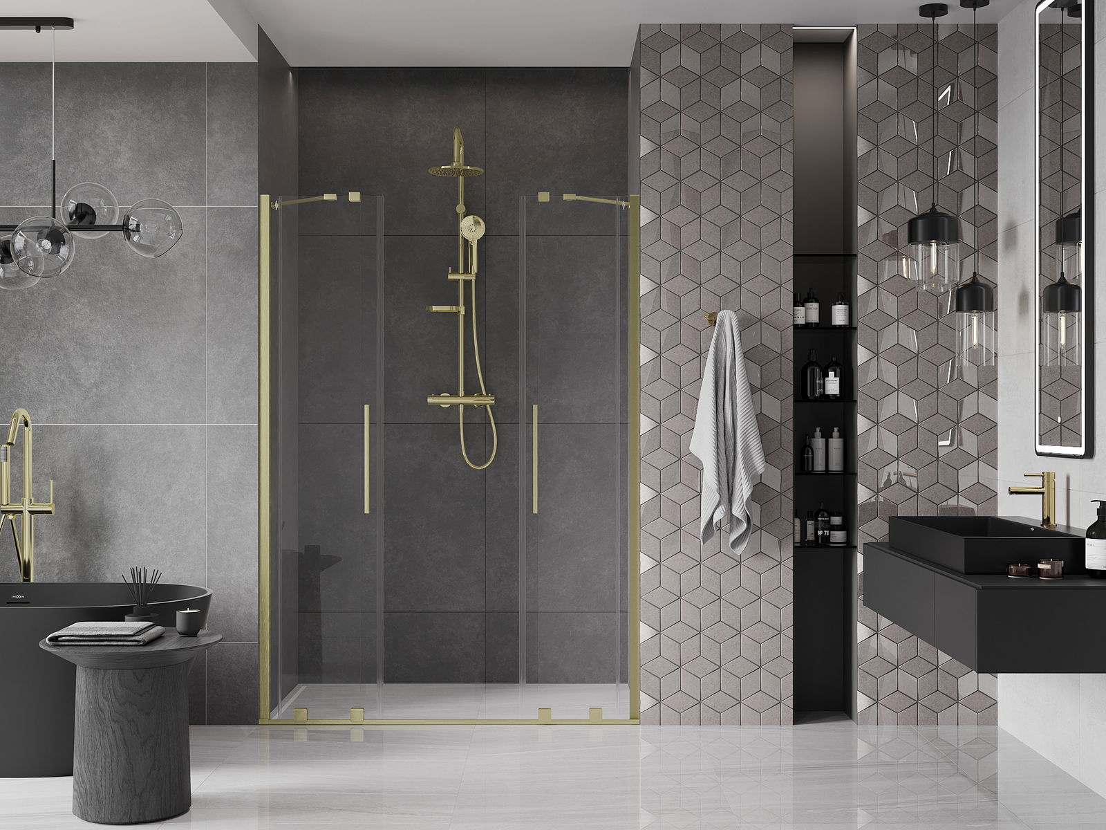 Patogi ir patogi rankena pagaminta iš nerūdijančio plieno. Madinga forma ir prie profilių spalvos deranti apdaila suteikia visumai modernią ir stilingą išvaizdą, kuri pagerina bet kurio vonios kambario estetiką.