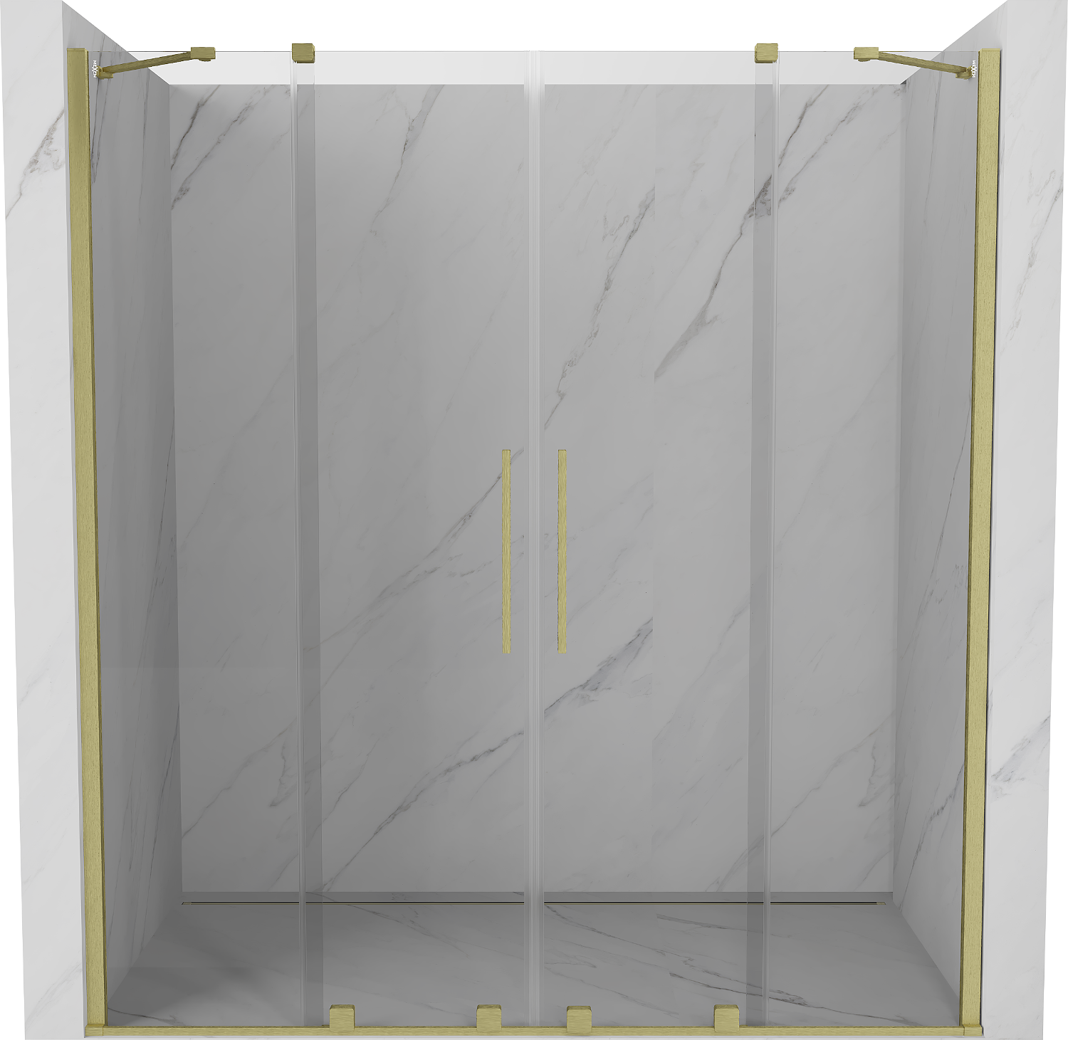 Mexen Velar Duo stumdomos dušo durys 200 cm, skaidrios, šlifuotas auksas - 871-200-000-02-55