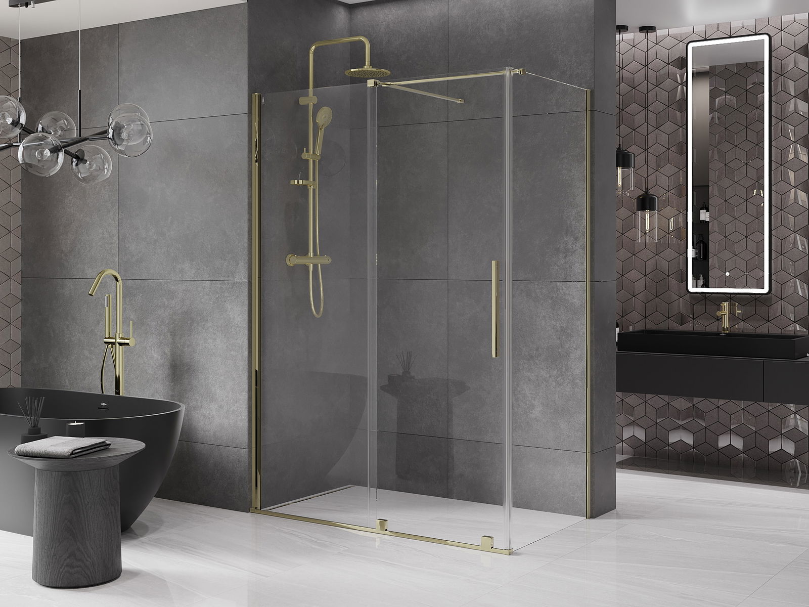 Mexen Velar stumdomos dušo kabina 140 x 70 cm, skaidri, auksinė - 871-140-070-01-50