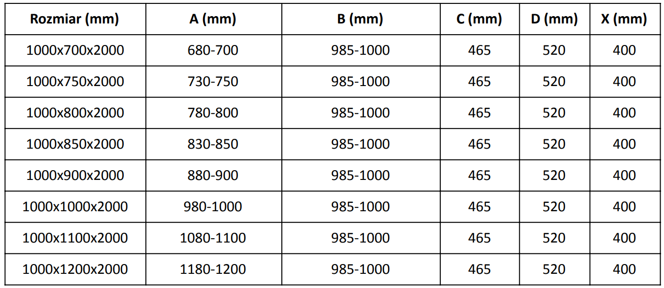 Dušo kabinos, durys ir sienelės yra standartiškai pritaikytos montuoti ant nustatytų matmenų dušo padėklų. Būtent šie matmenys nurodomi gaminio pavadinime arba aprašyme. Tačiau atkreipkite dėmesį, kad faktiniai elementų matmenys gali šiek tiek skirtis nuo vardinių verčių. Planuojant montuoti tiesiai ant grindų, rekomenduojama atidžiai patikrinti išorinius matmenis ir elementų išdėstymą pagal techninį brėžinį.