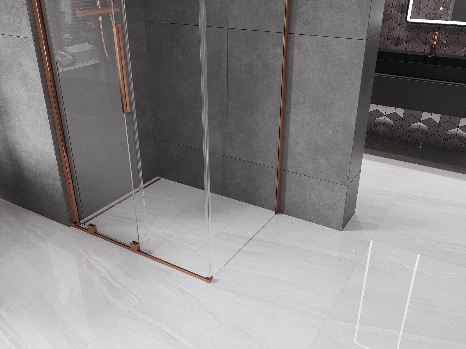 Mexen Velar stumdoma dušo kabina 120 x 70 cm, skaidri, rožinis auksas - 871-120-070-01-60