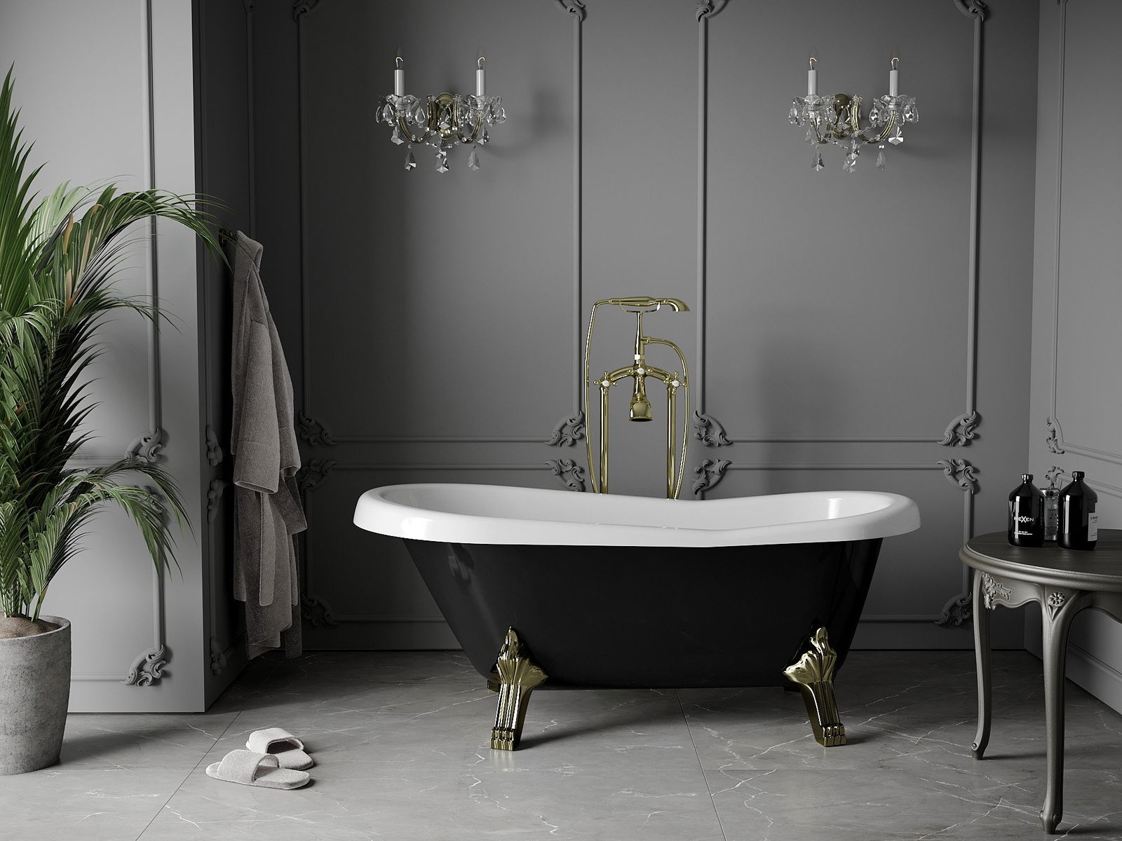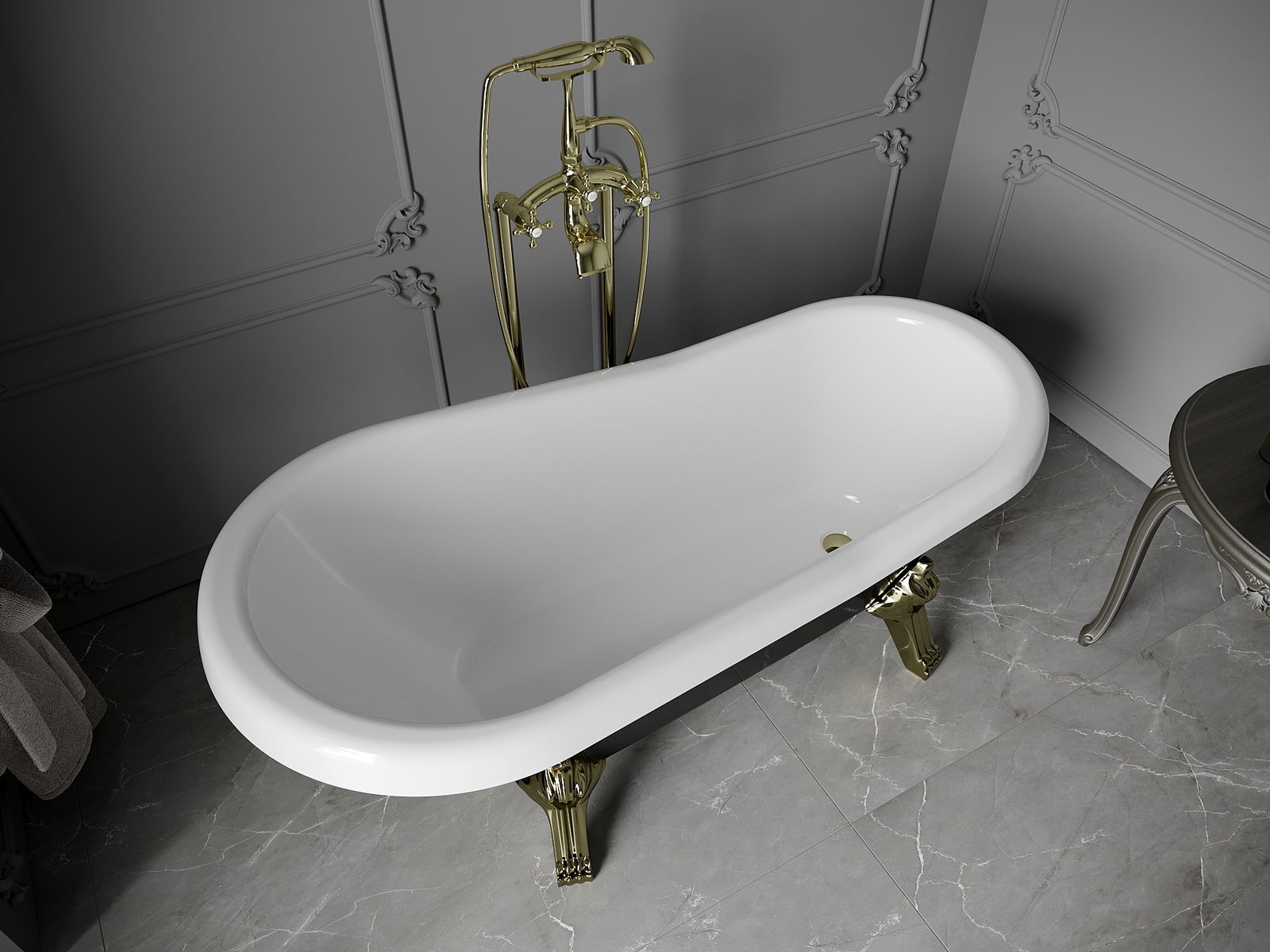 Mexen Retro laisvai pastatoma vonia 150 x 73 cm, balta/juoda, aukso spalvos kojos - 53251507375-50
