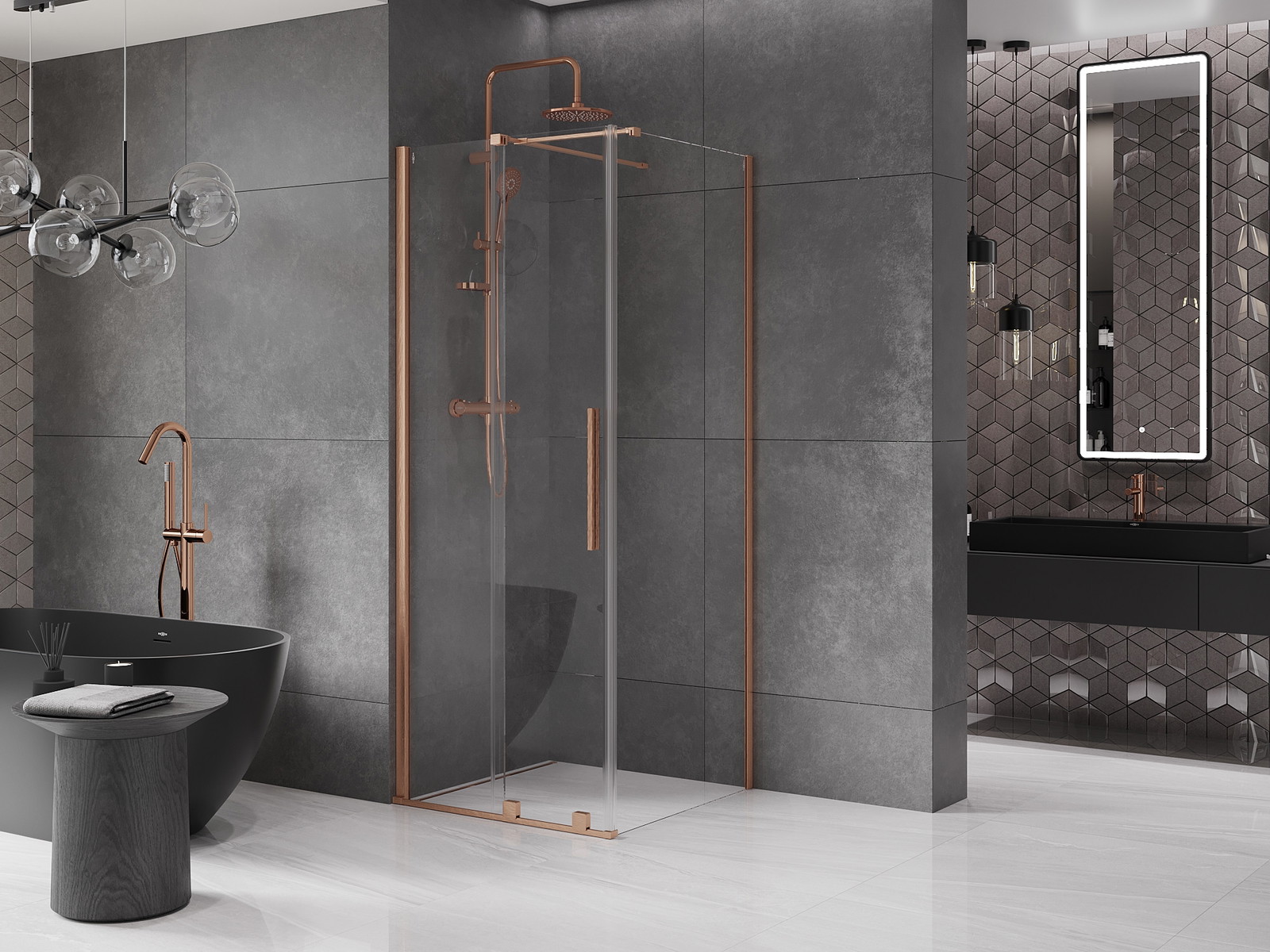 Mexen Velar stumdomas dušo kabinas 90 x 90 cm, skaidrus, šlifuotas varis - 871-090-090-01-65