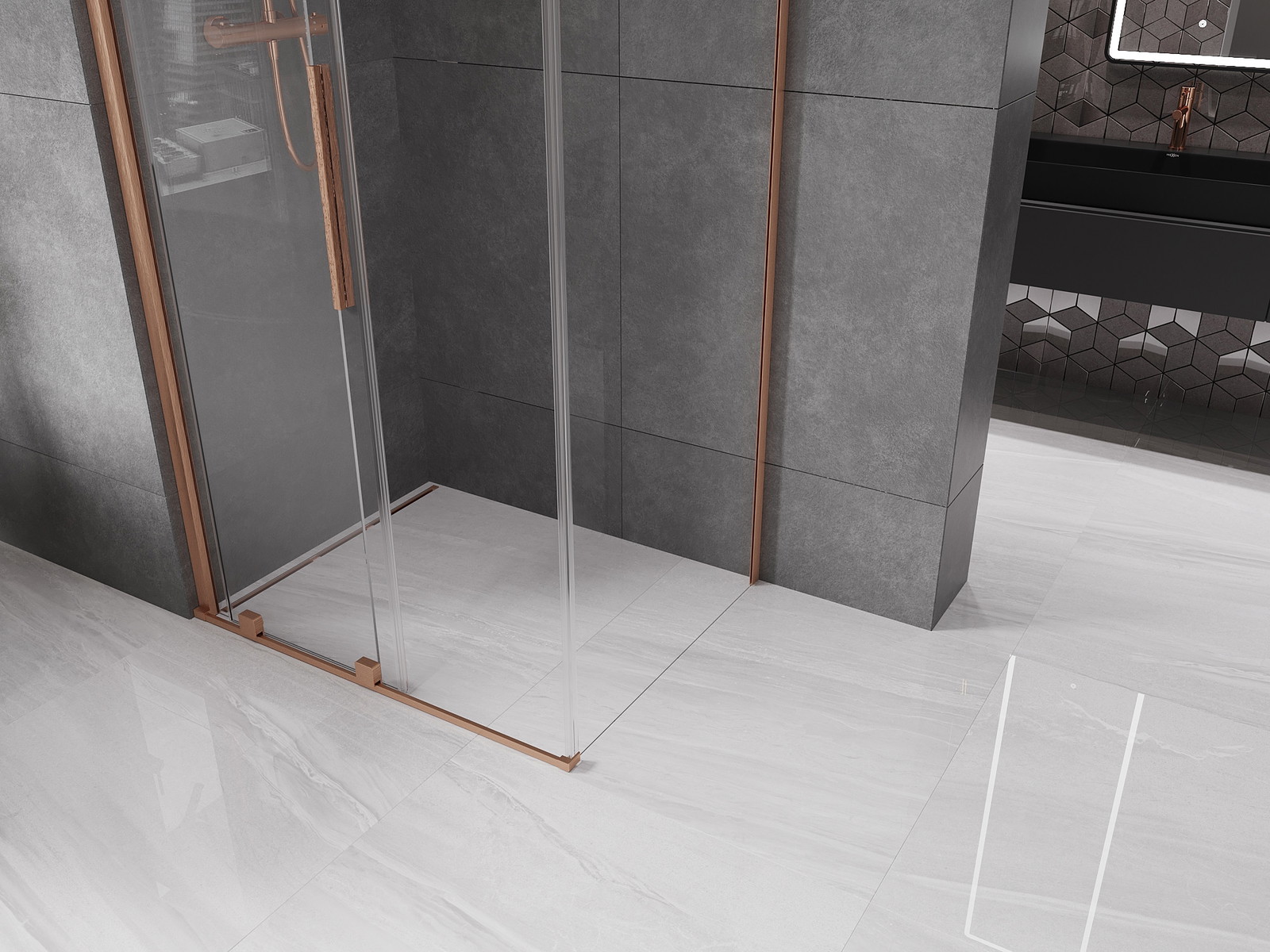 Mexen Velar stiklo durų dušo kabina 100 x 120 cm, skaidrus, šlifuotas varis - 871-100-120-01-65