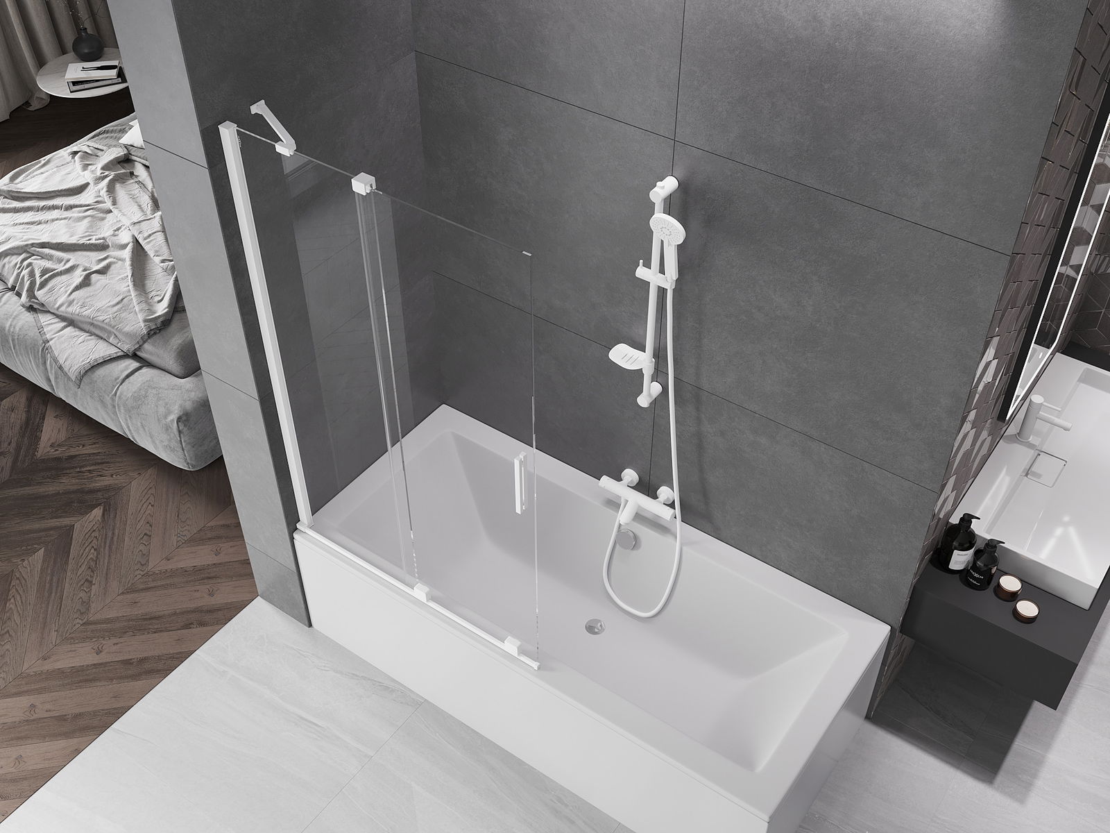 Mexen Velar vonios pertvara 2 dalių slankiojančios durys 100 x 150 cm, skaidrus, baltas - 896-100-000-01-20