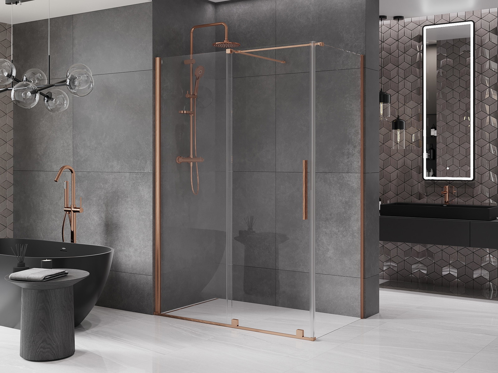 Mexen Velar stumdoma dušo kabina 160 x 70 cm, skaidri, šlifuotas varis - 871-160-070-01-65
