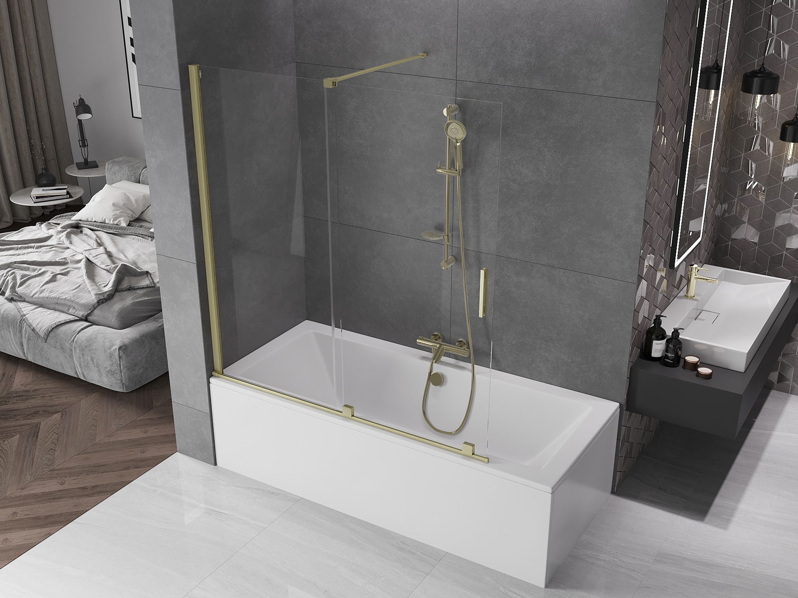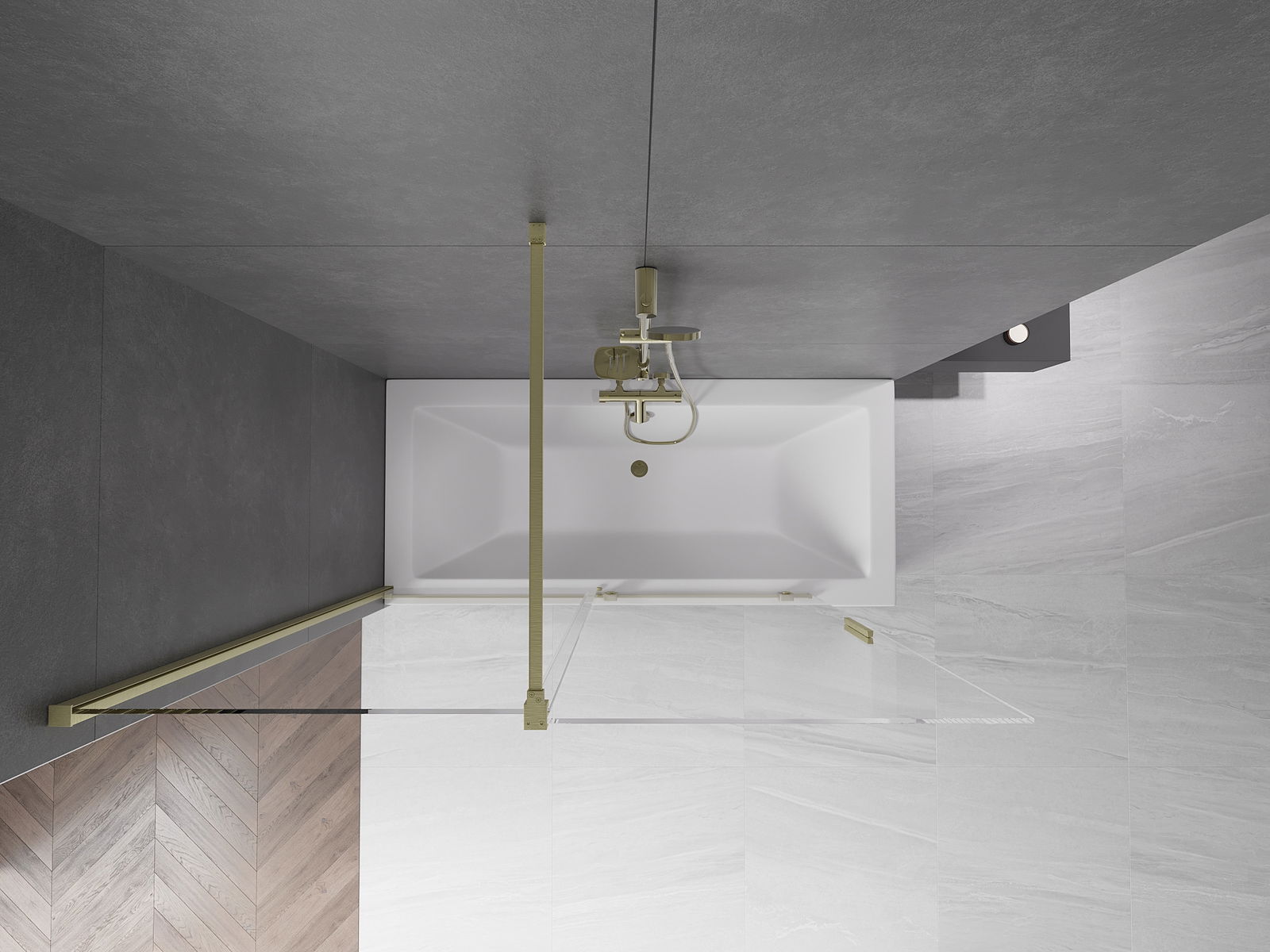 Mexen Velar vonios ekranas 2-dalių stumdomas 150 x 150 cm, permatomas, auksinis šlifuotas - 896-150-000-01-55
