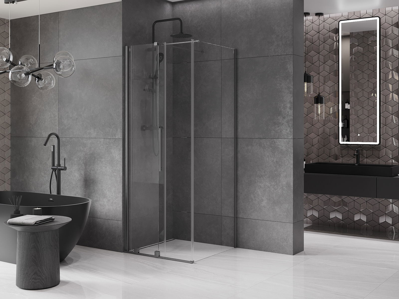 Mexen Velar slankiojanti dušo kabina 100 x 100 cm, skaidri, šukuotas tamsiai pilkas - 871-100-100-01-66