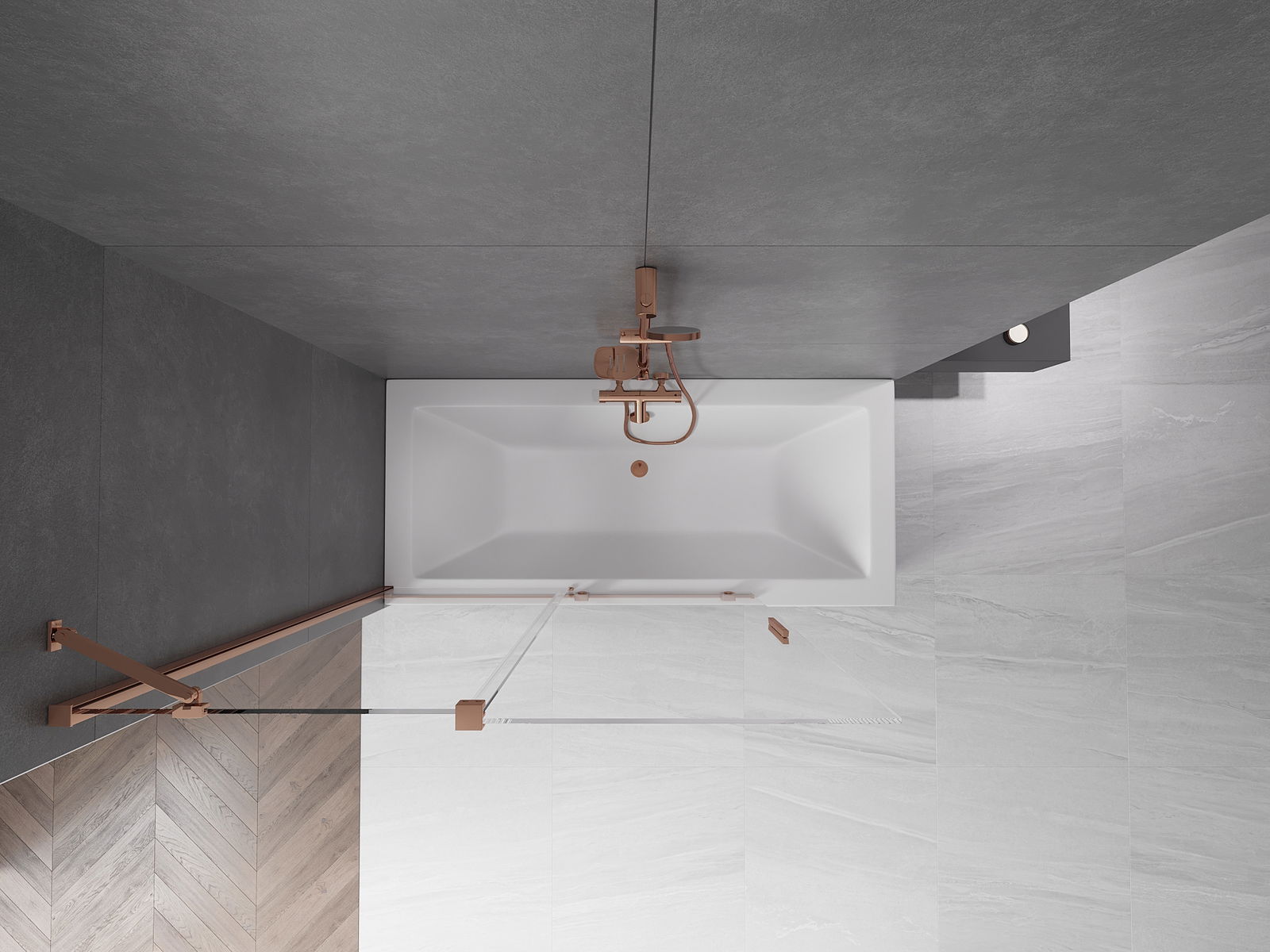 Mexen Velar dvipusis stumdomas dušo pertvara 130 x 150 cm, skaidri, rožinis auksas - 896-130-000-01-60