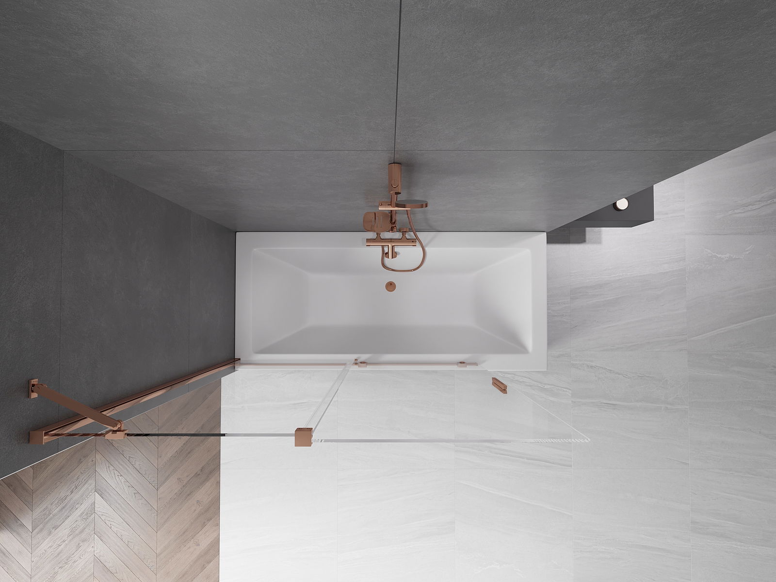 Mexen Velar vonios ekrano dušo durys 2-durų stumiamos 140 x 150 cm, permatomos, rožinis auksas - 896-140-000-01-60