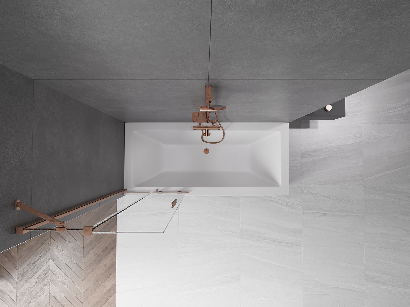 Mexen Velar dviejų dalių slankiojančia vonios pertvara 70 x 150 cm, skaidrus, šlifuota varinė - 896-070-000-01-65